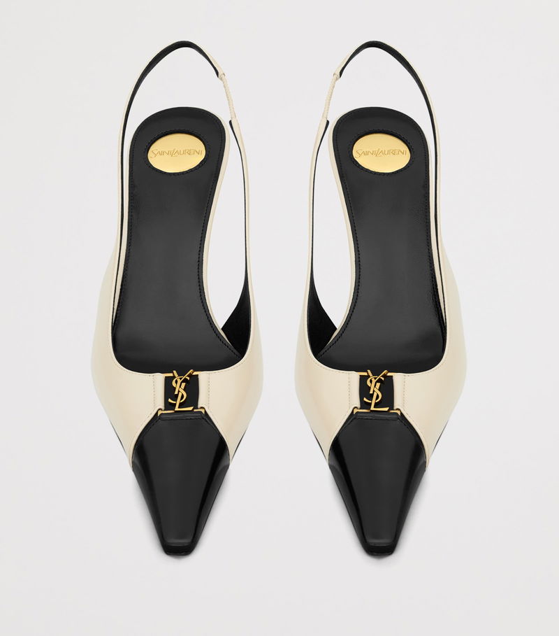 A new-season evolution of the Lee style, Saint Laurent’s Babylone slingback pumps are ready to walk to the top of wish lists across the globe. The pair is crafted in two-tone leather, allowing the gold-tone details to take centre stage.