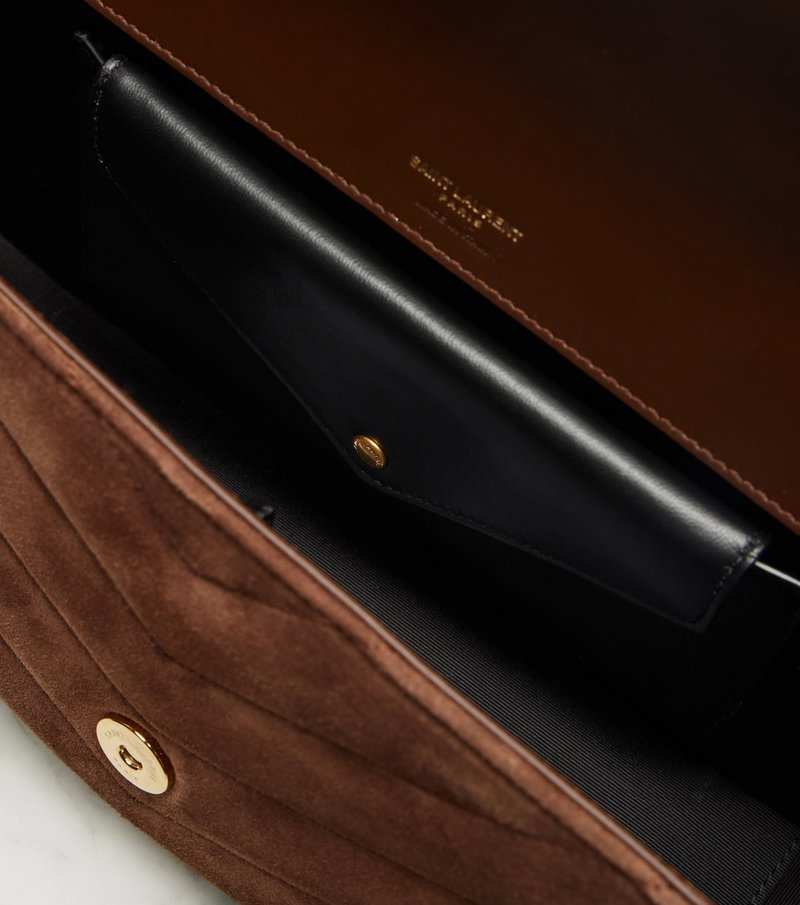 Topped with signature hardware, the Loulou Medium shoulder bag is Italian-made from matelassé suede with chevron-quilted topstitching.