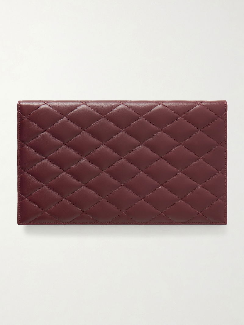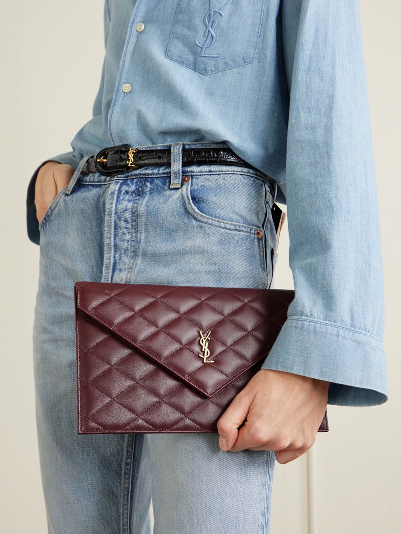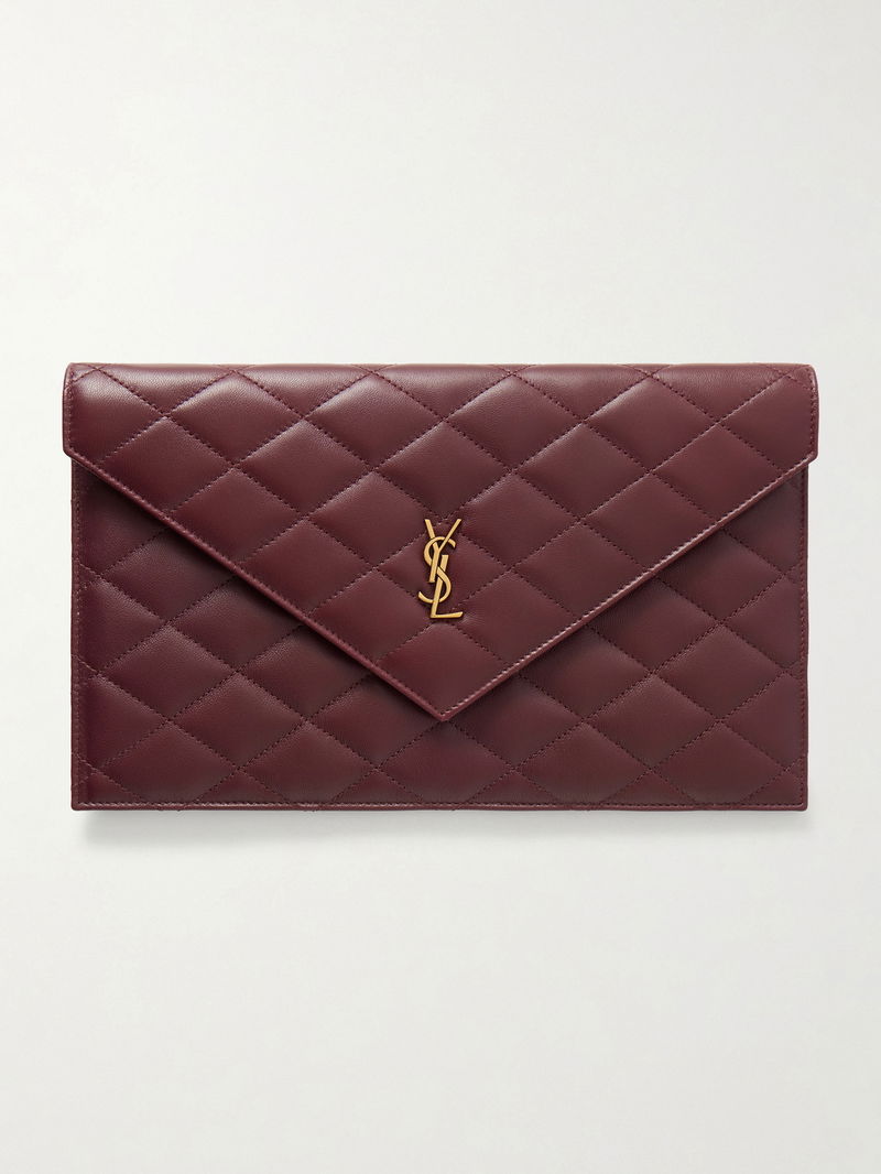 SAINT LAURENT's accessories never date. This matelassé clutch has been made in Italy from leather and has the iconic 'YSL' plaque in gold-tone hardware. We love its clean, chic lines.