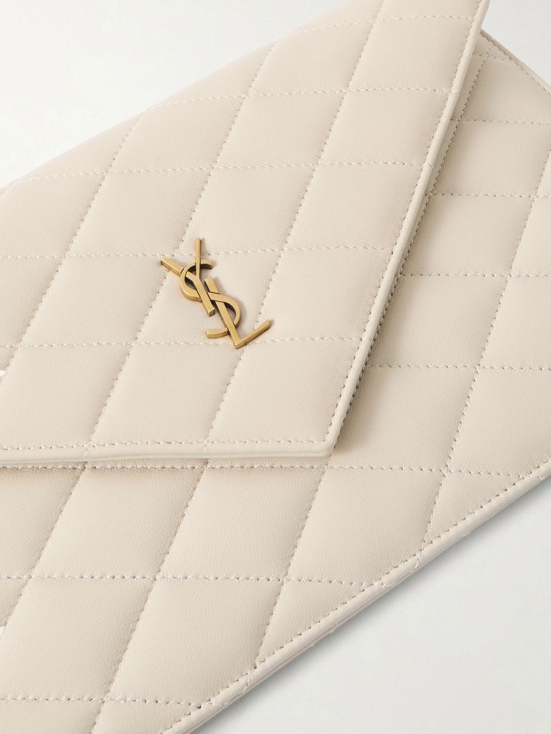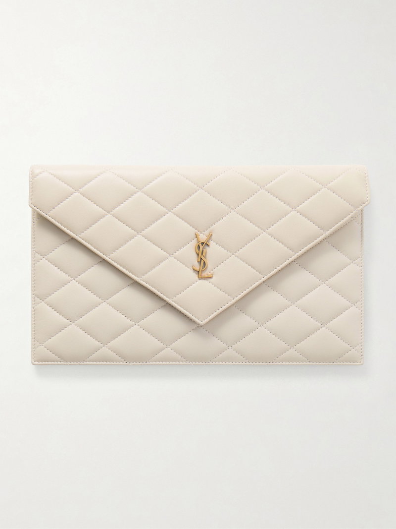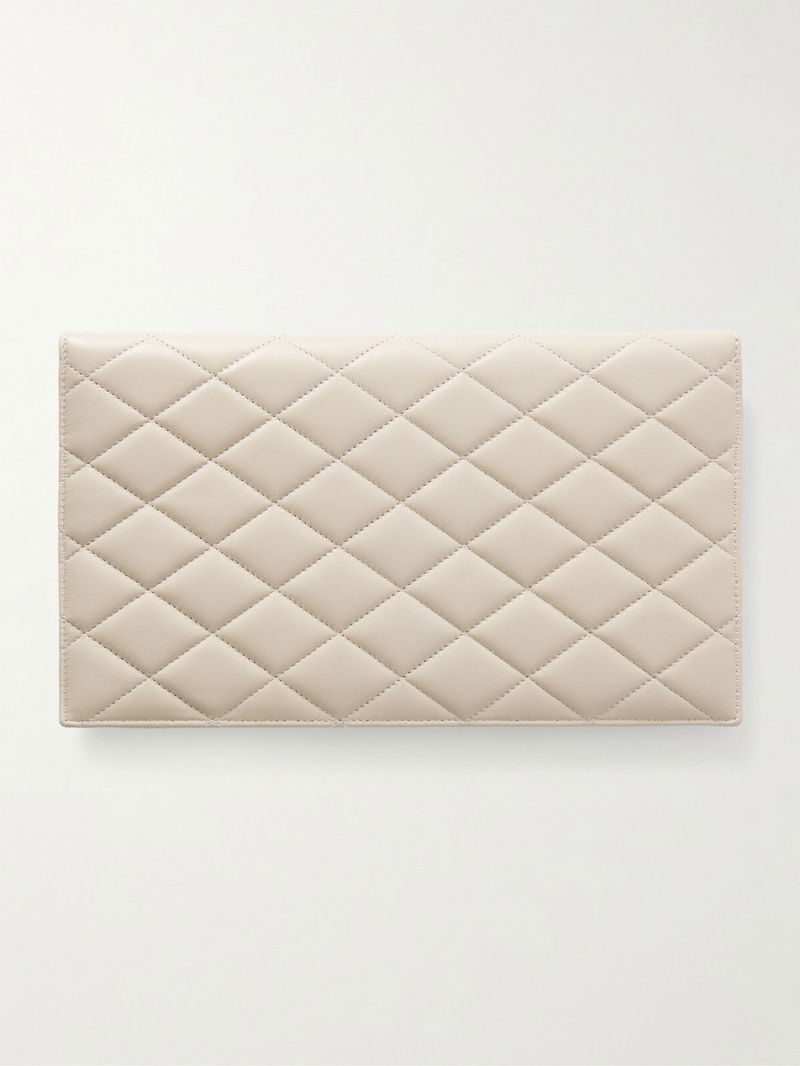 SAINT LAURENT's accessories never date. This matelassé clutch has been made in Italy from leather and has the iconic 'YSL' plaque in gold-tone hardware.