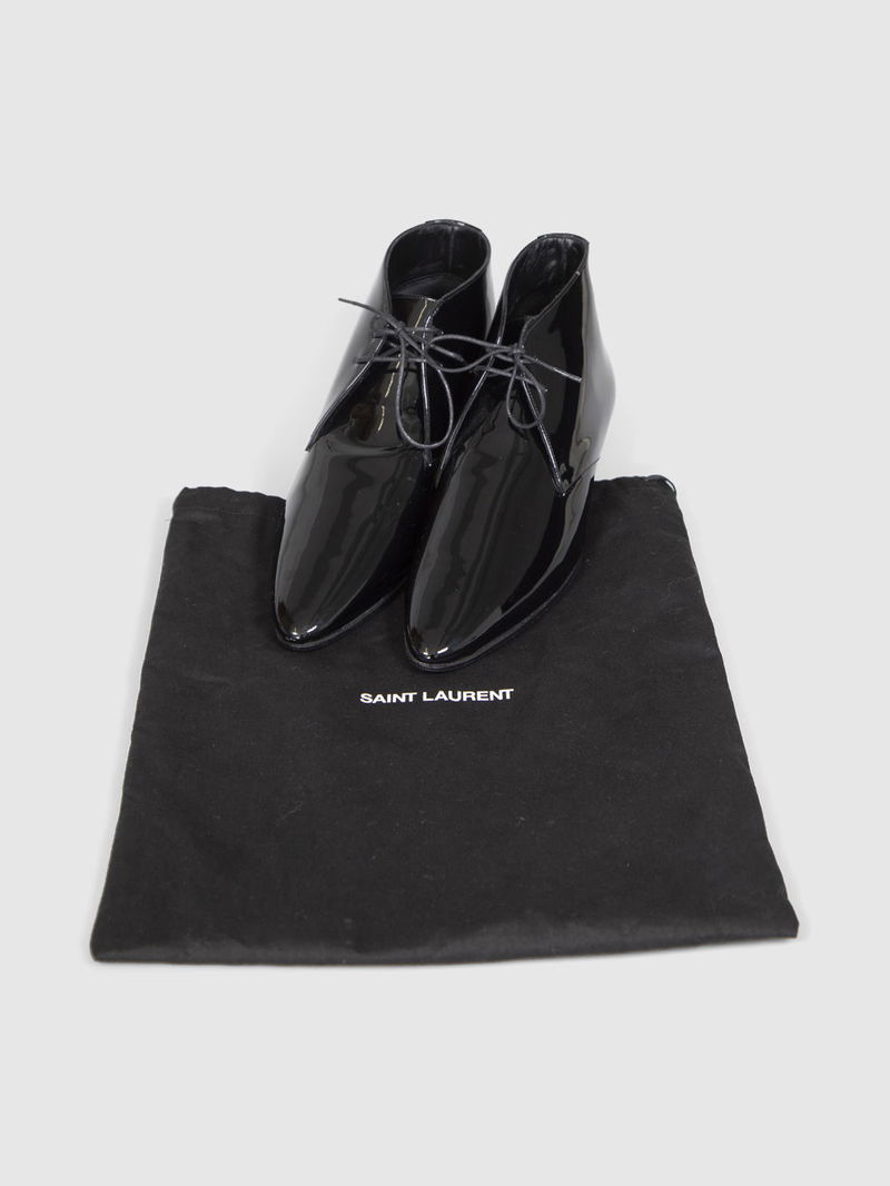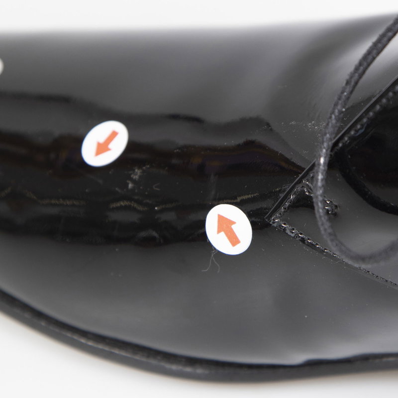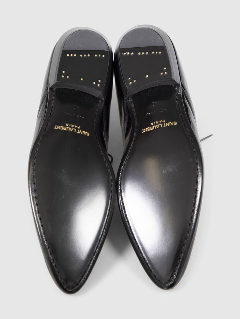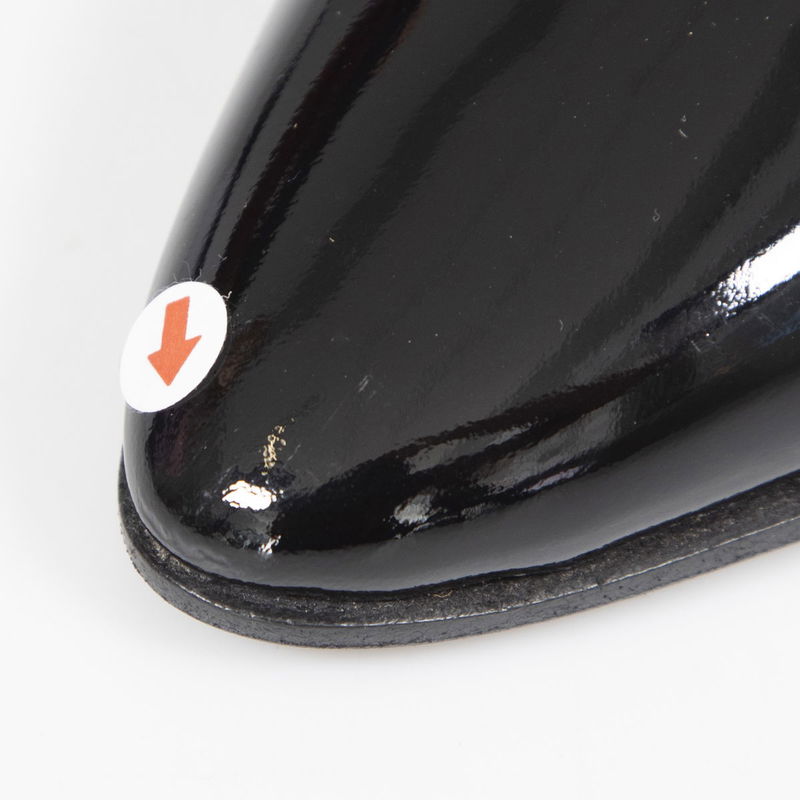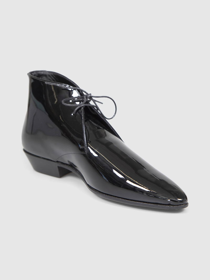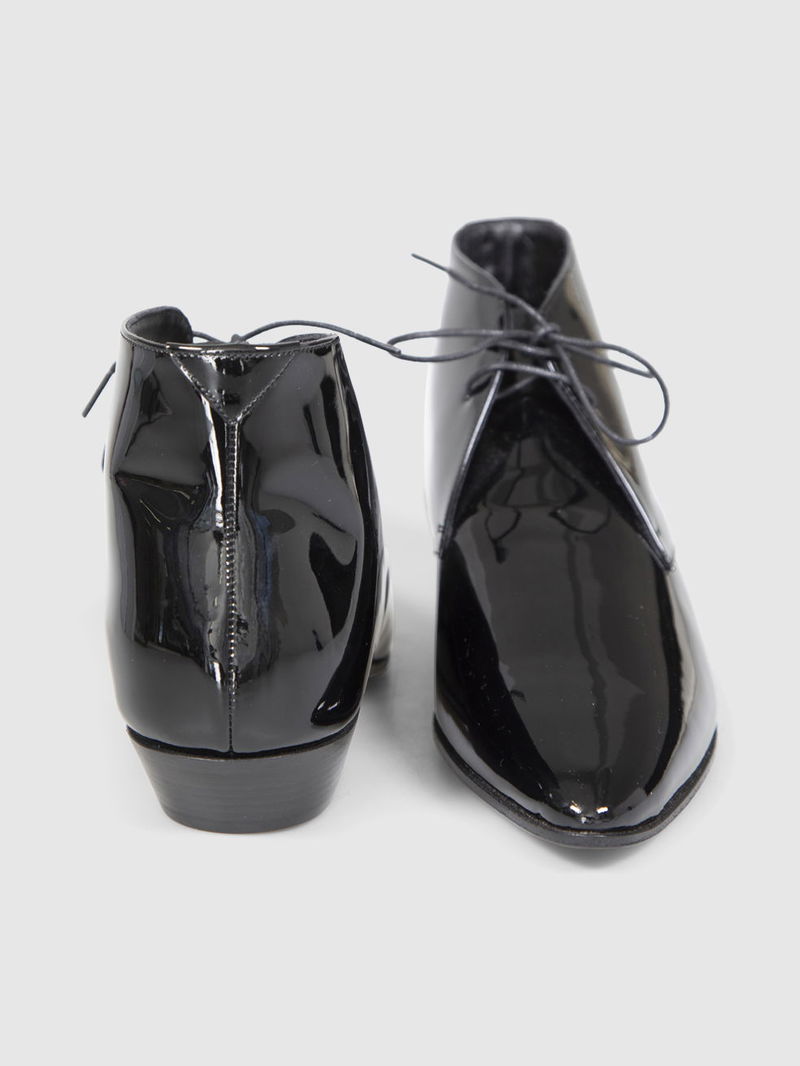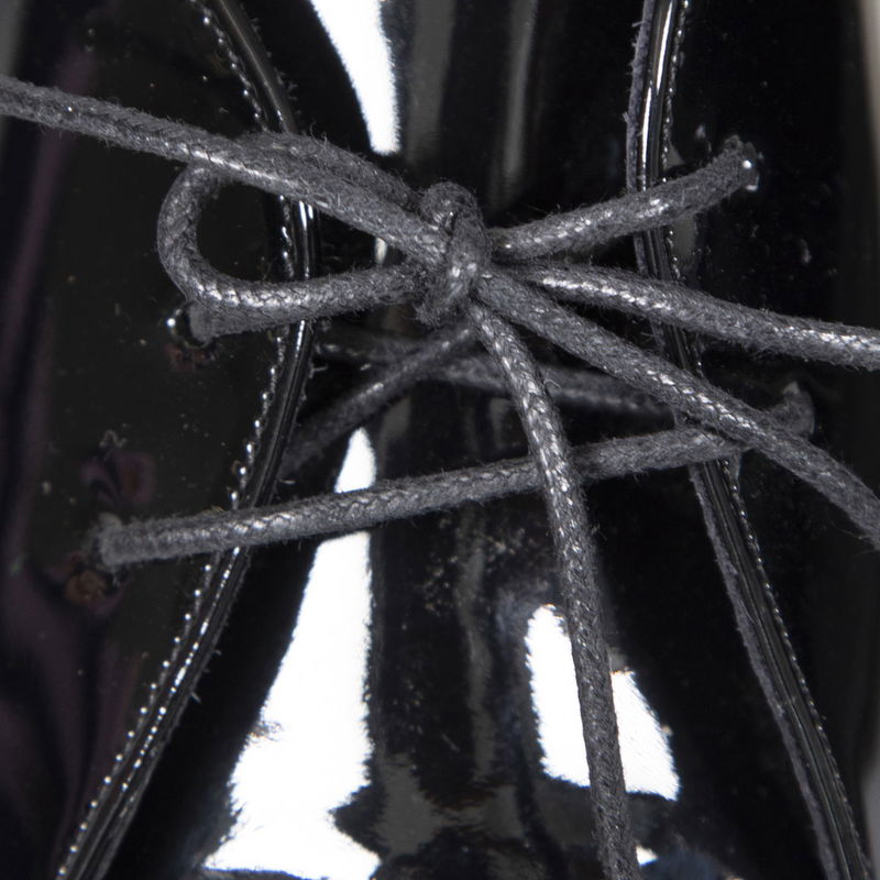Brogues, Patent-leather, Pointed toe, Lace-up front.