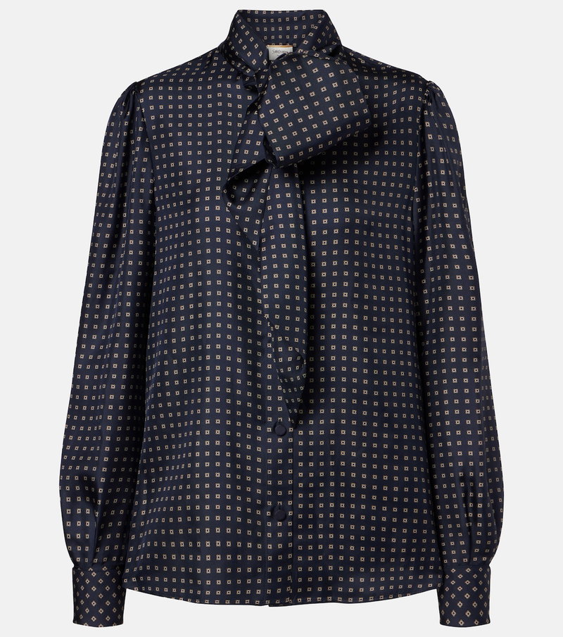 Since its conception in 1961, Saint Laurent has been coveted for its elegant Parisian aesthetic. This blouse showcases a refined silk crêpe de chine construction with a charming self-tie neck and an all-over print.