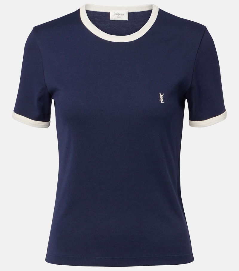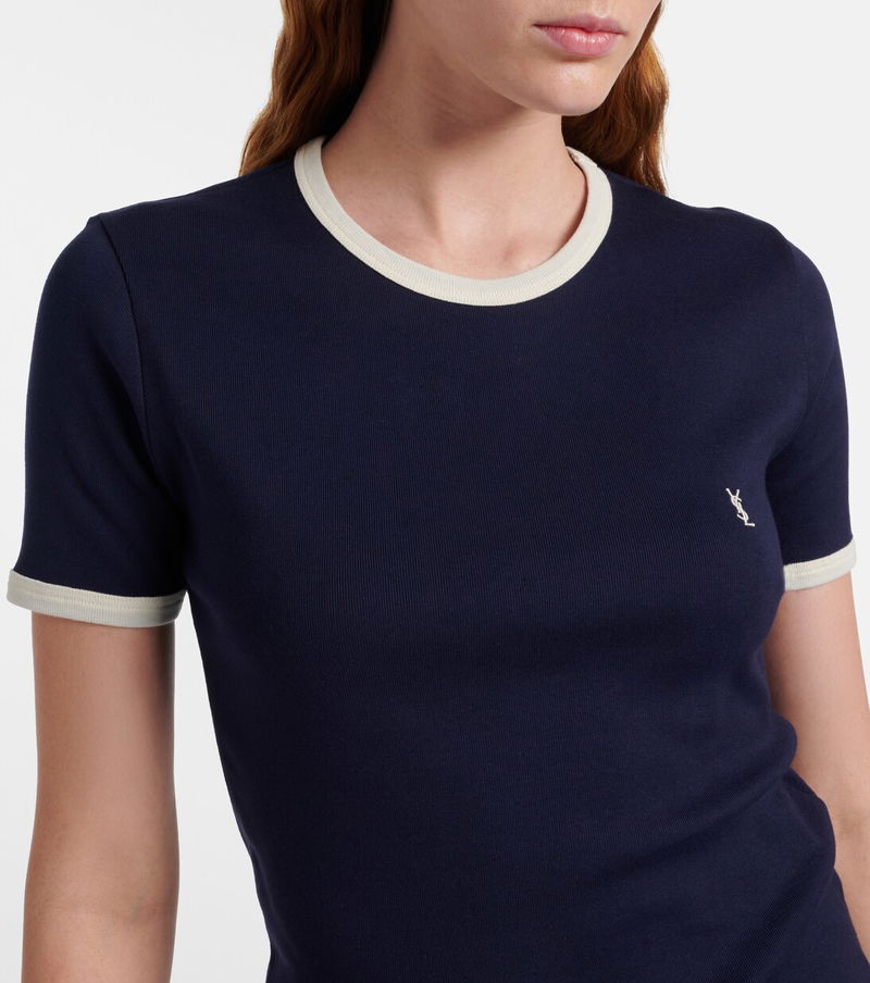 One of the most famous symbols in fashion, the YSL monogram consists of the intertwined initials of Saint Laurent's founder. It's featured on this ribbed-knit T-shirt, carefully crafted in Italy from cotton jersey.