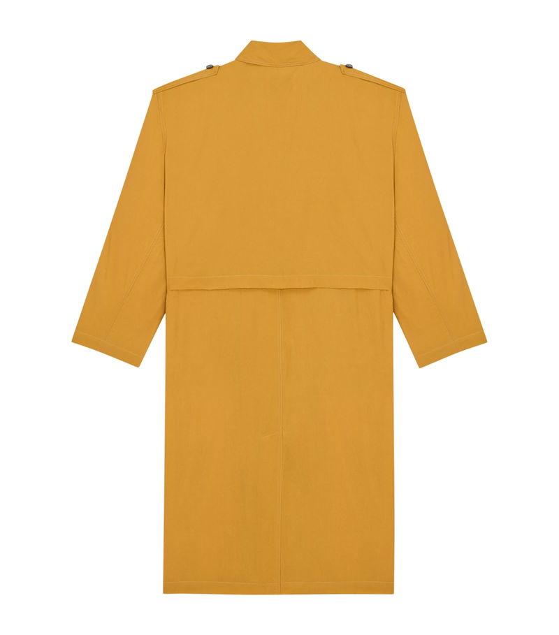 A bold flash of colour meets restrained tailoring in this Saint Laurent silk trench coat, where minimalist construction collides with maximalist impact.