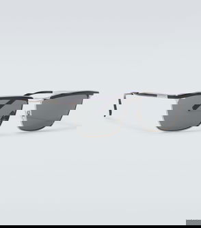 In an aviator style, these silver-toned metal sunglasses from Saint Laurent sport dark-tinted lenses, a distinct double-bar detail, and the label's logo embossed on the arms, and come in a signature leather case.