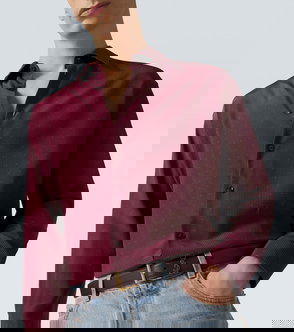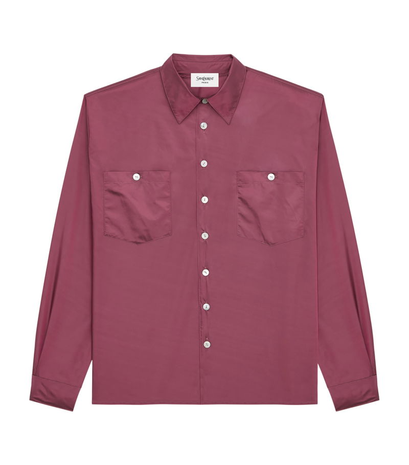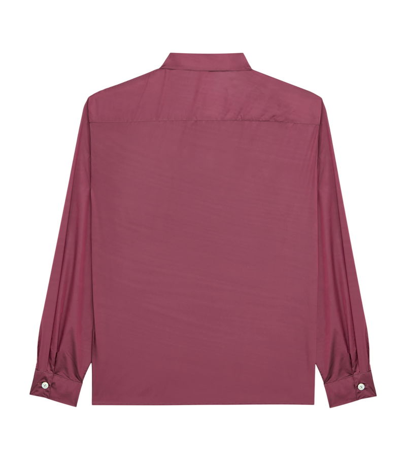 Fits are languid, and the fabric choice supports the relaxed aesthetic as captured by the crisp taffeta of this shirt.