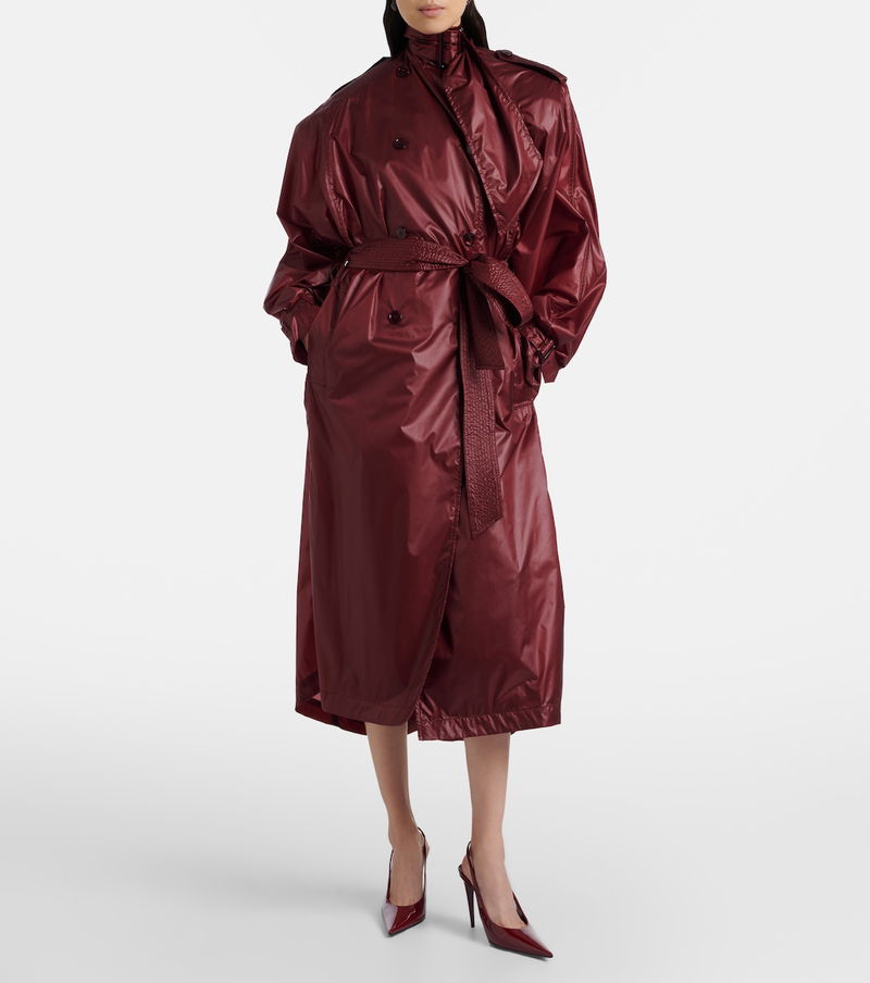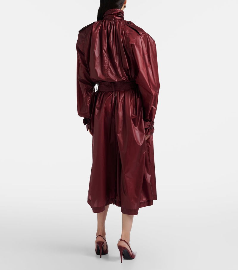 Since its conception in 1961, Saint Laurent has been coveted for its elegant Parisian aesthetic. Carefully crafted from technical water-resistant fabric, this trench coat features an adjustable neckline, a matching belt, and a subtle sheen for an eye-catching effect.