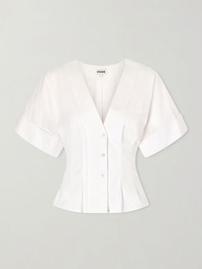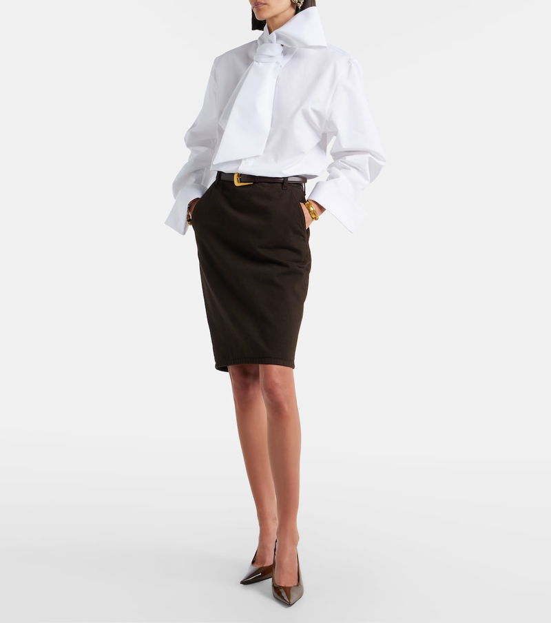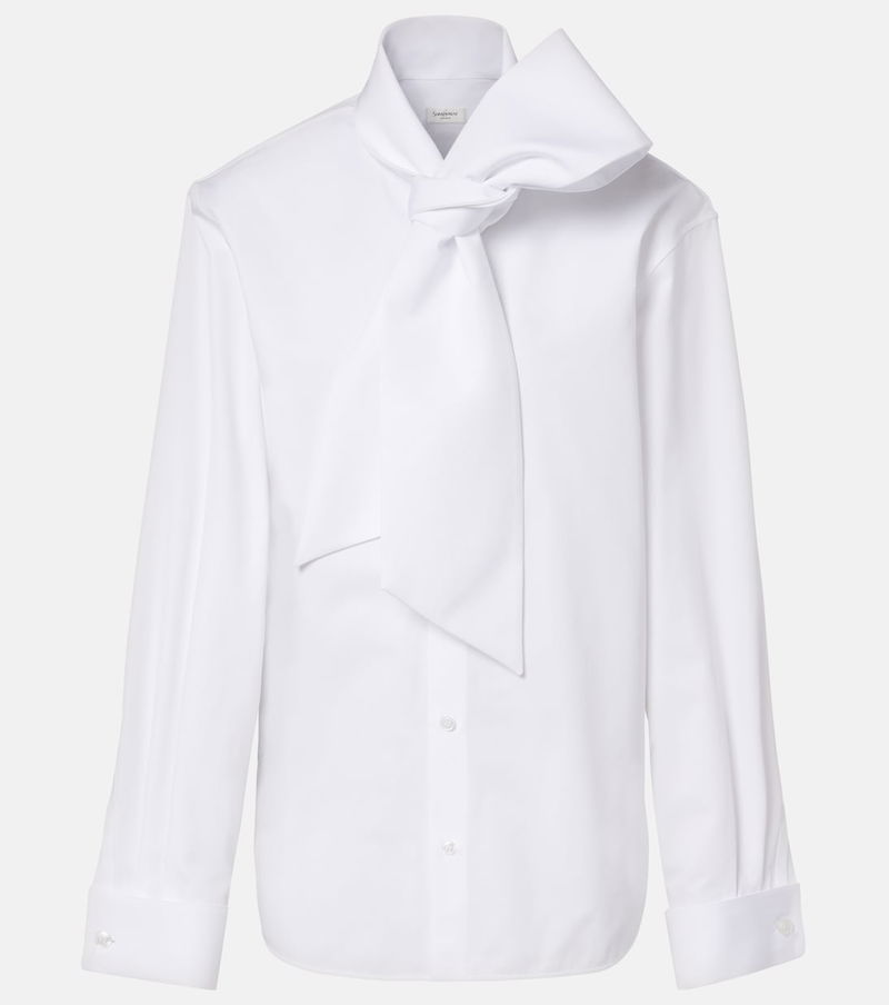Since its conception in 1961, Saint Laurent has been coveted for its elegant Parisian aesthetic. This cotton poplin blouse creates a polished look with its elegant self-tie collar and sculpted shoulders.