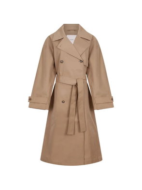 Since its conception in 1961, Saint Laurent has been coveted for its elegant Parisian aesthetic. A contemporary take on a classic, this trench coat features a buckled lavallière collar, exaggerated shoulders, a belted waist, and batwing sleeves.