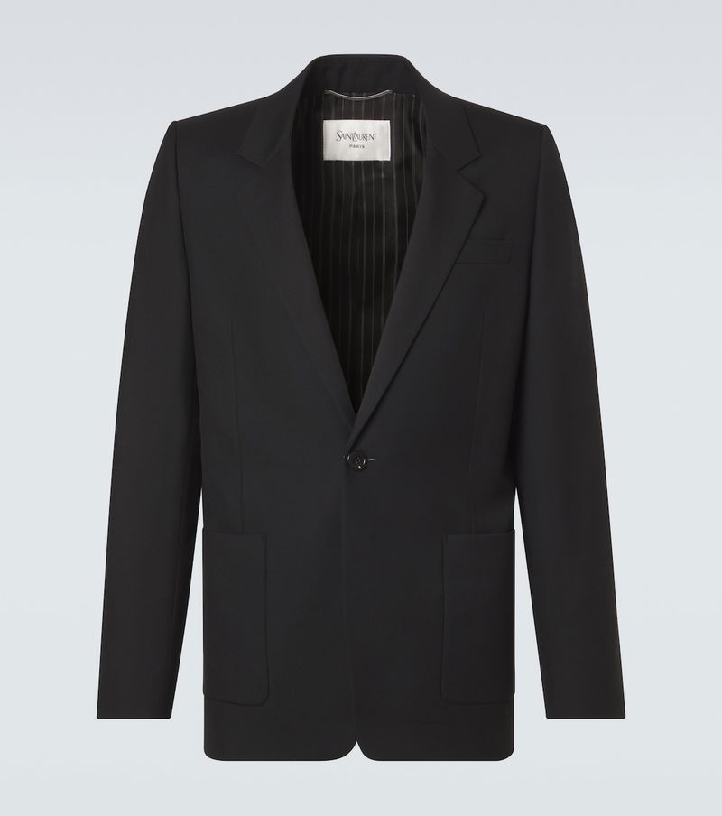 Since its conception in 1961, Saint Laurent has been coveted for its elegant Parisian aesthetic. This blazer is Italian-crafted from wool gabardine into a single-breasted silhouette with notched lapels, shoulder pads, and myriad pockets.