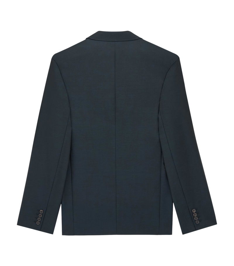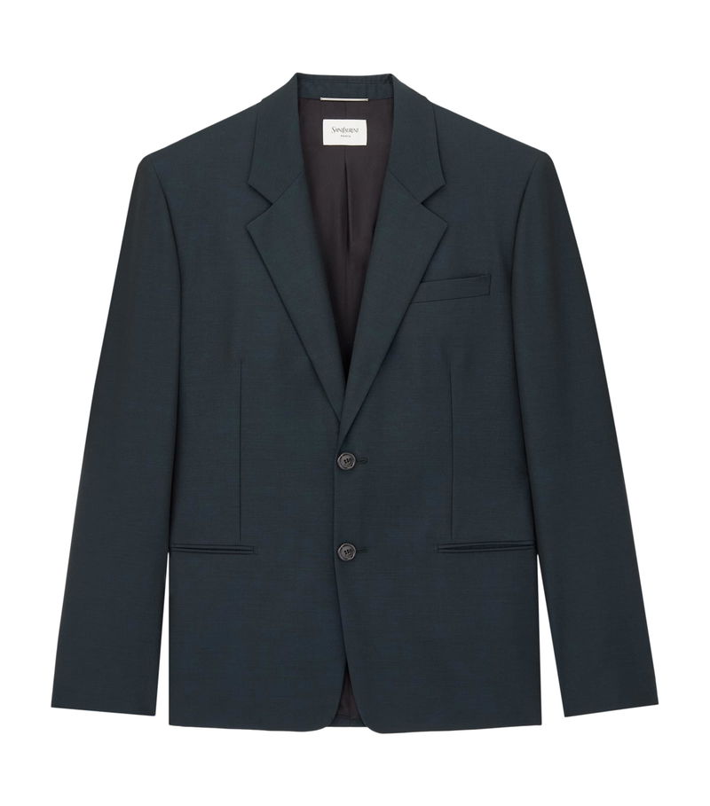 This single-breasted blazer in wool–mohair honours that legacy, with padded shoulders for structure, carefully placed jetted pockets for refined utility, and a cut that balances sharp tailoring with ease of movement.