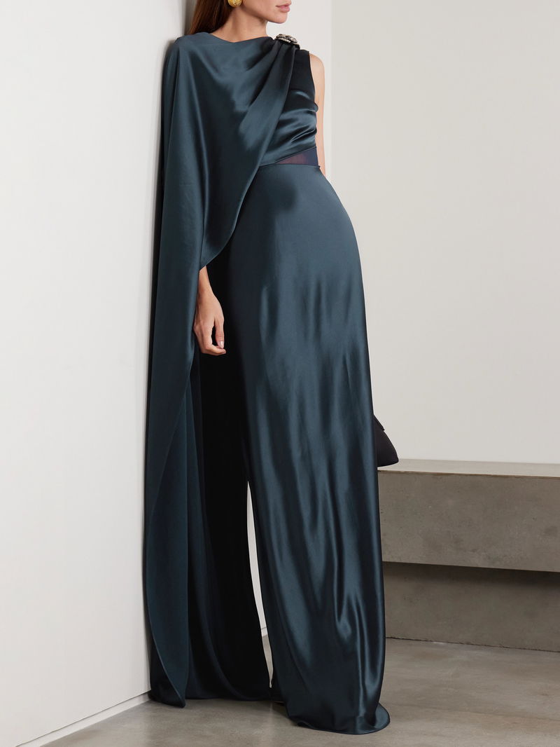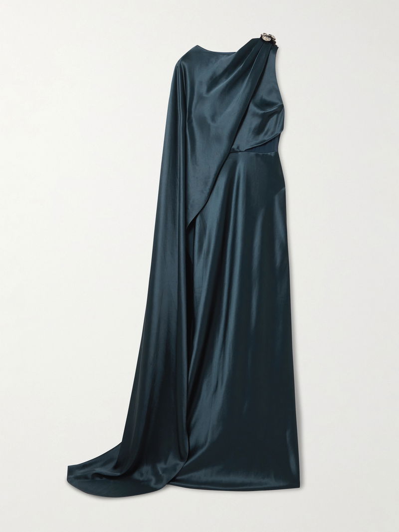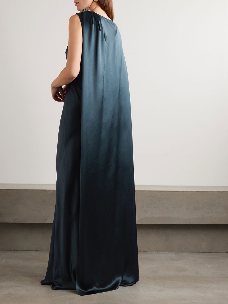 Phoenix Cape-effect Crystal-embellished Draped Satin Gown