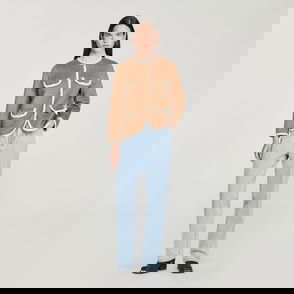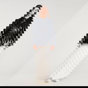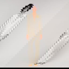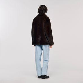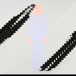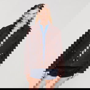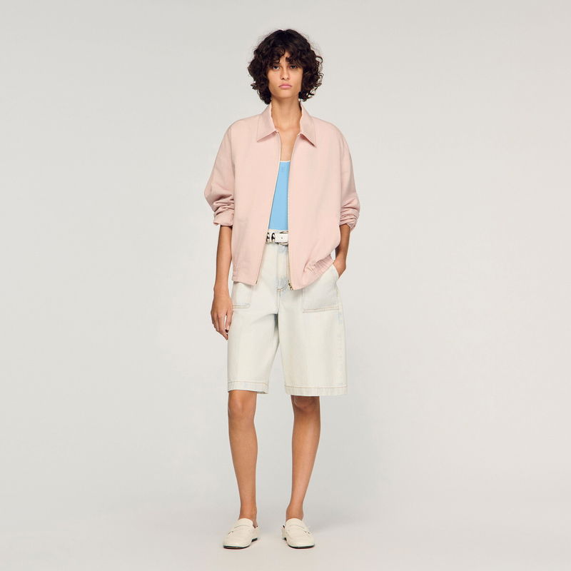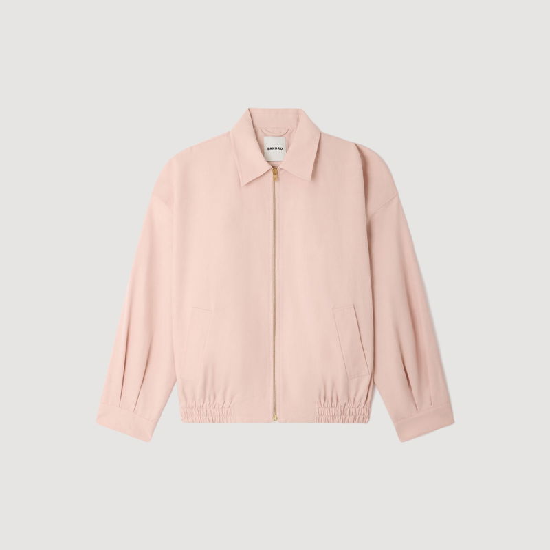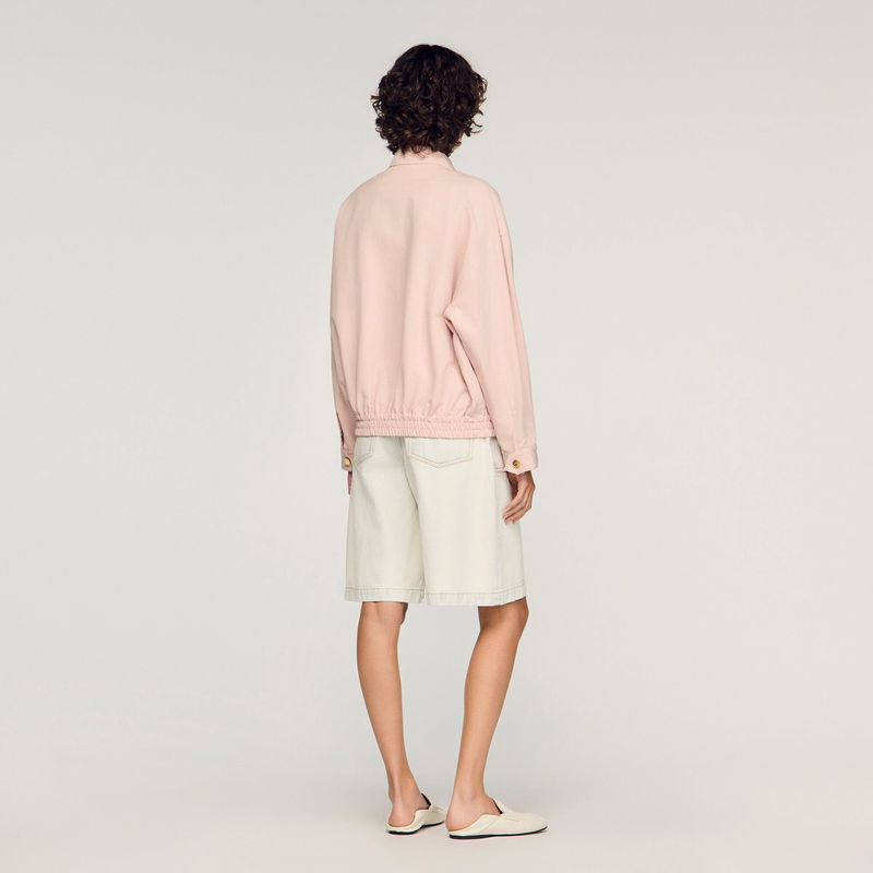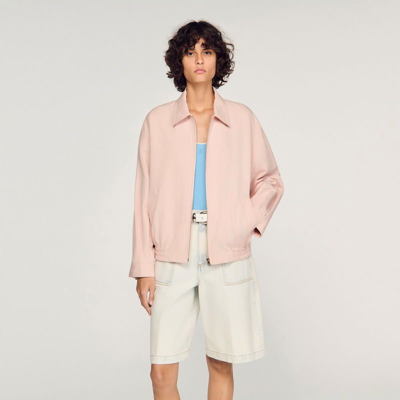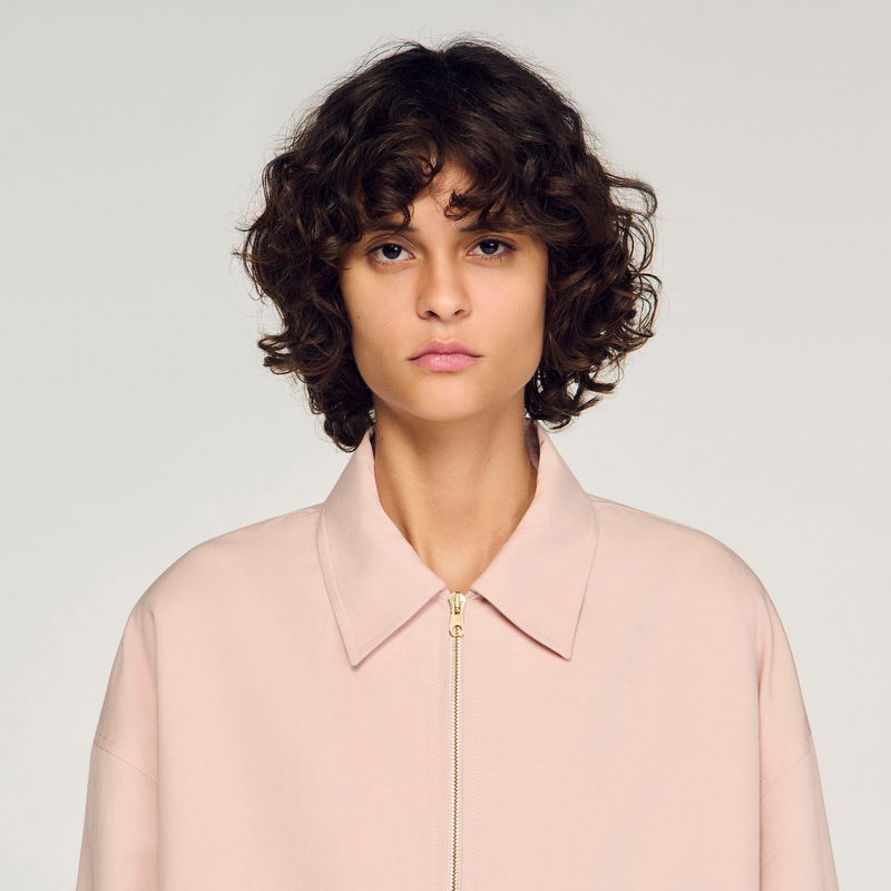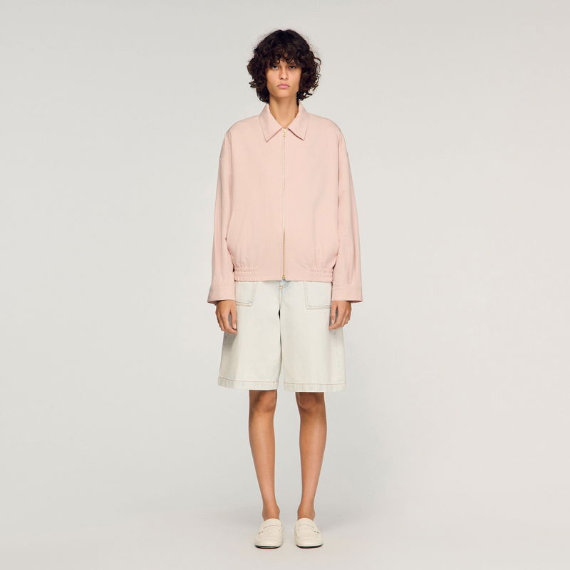 Wide jacket in a plain cotton and linen blend with shirt collar, long sleeves and front zip fastening.