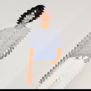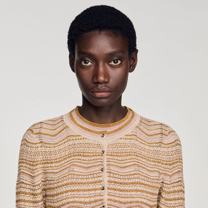 Straight-cut decorative knit cardigan with a colour gradient, round neckline and long sleeves.