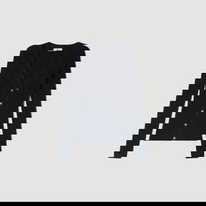 Denim-Paneled Ribbed Wool Cardigan