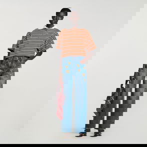 Flared faded denim jeans with patch pockets on the front. Sandro Women's flared jeans. Patch pockets. Faded fabric. Zip and button fastening.