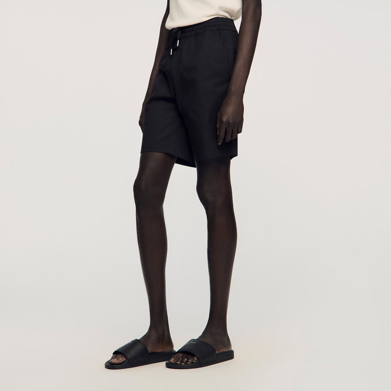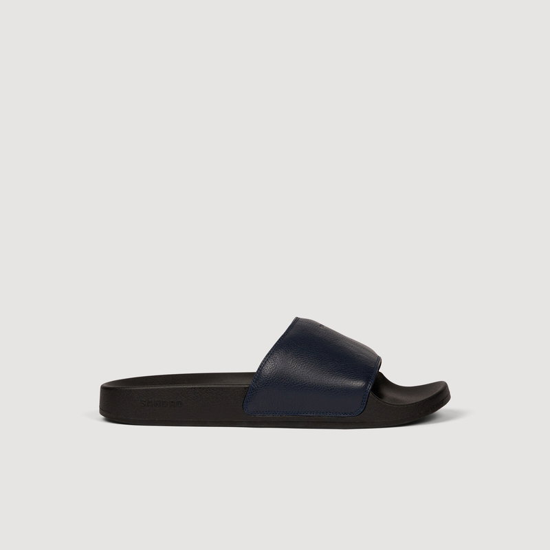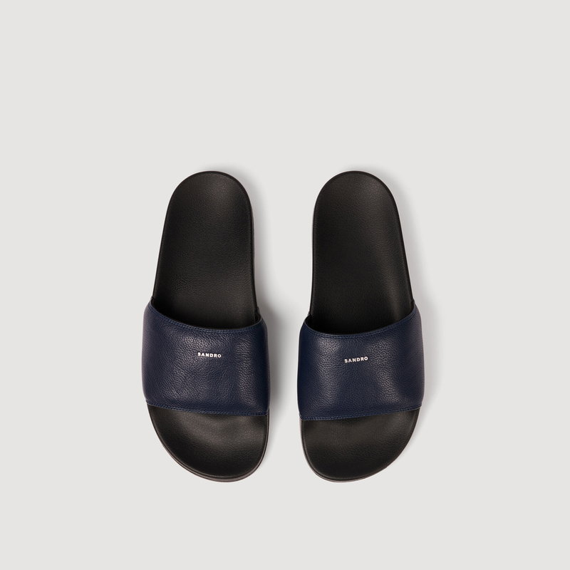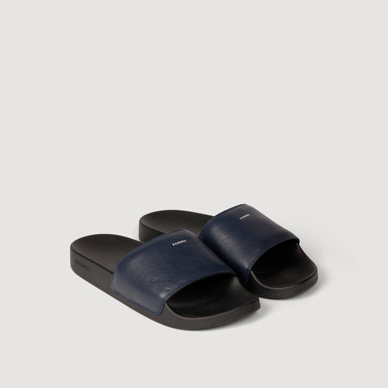 Grained leather sandals with a silver debossed SANDRO logo.