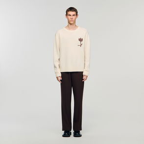 Double jersey long-sleeved knit jumper with round neck and an appliqué flower patch on the chest.