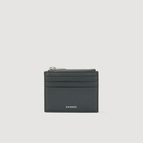Reconstitued leather flap wallet with 6 card compartments and a large central compartment.