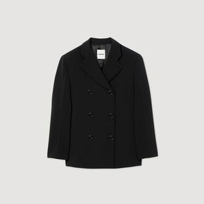 Striped suit jacket with tone-on-tone sequins, featuring long sleeves, a lapel collar, button fastening, flap pockets and a welt pocket on the chest.
