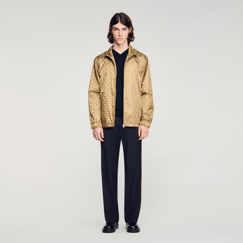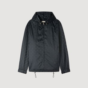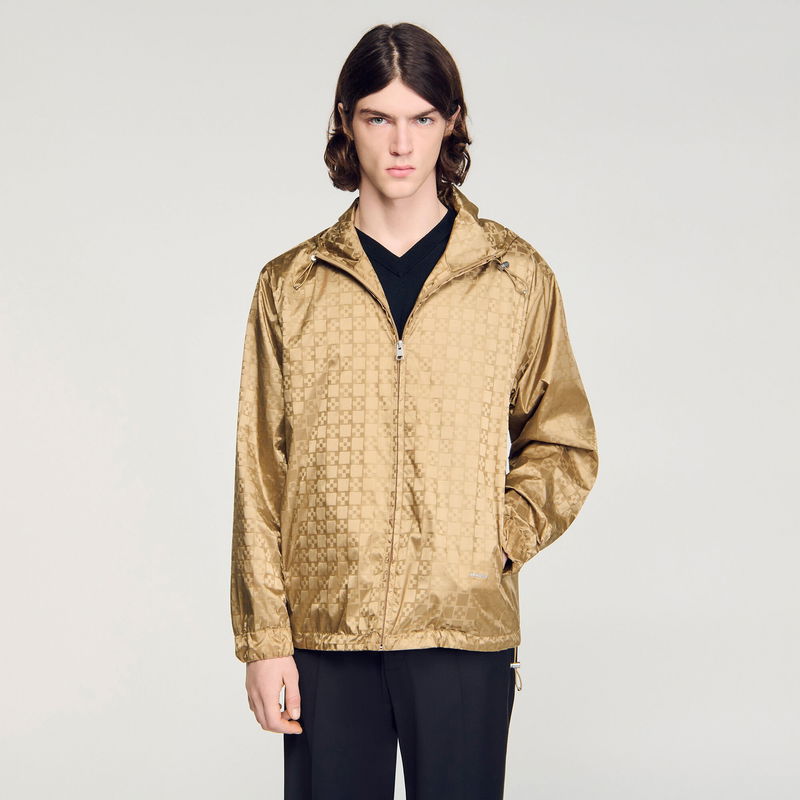 Technical fabric jacket with Square Cross print, zip fastening, drawstring hood with stoppers, and SANDRO plaque on the hem.