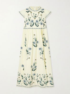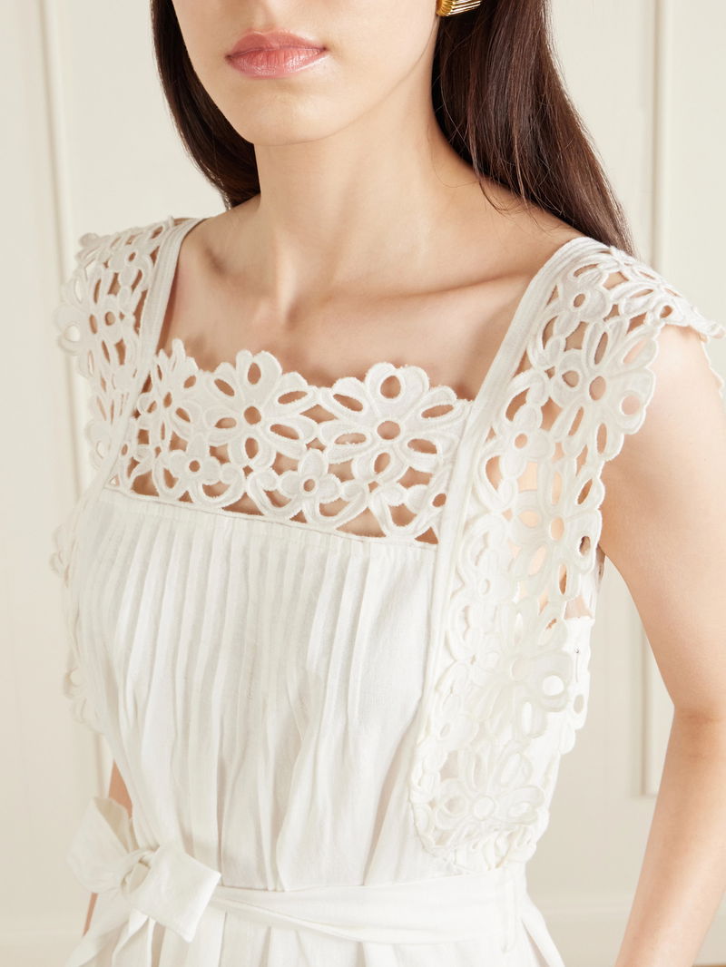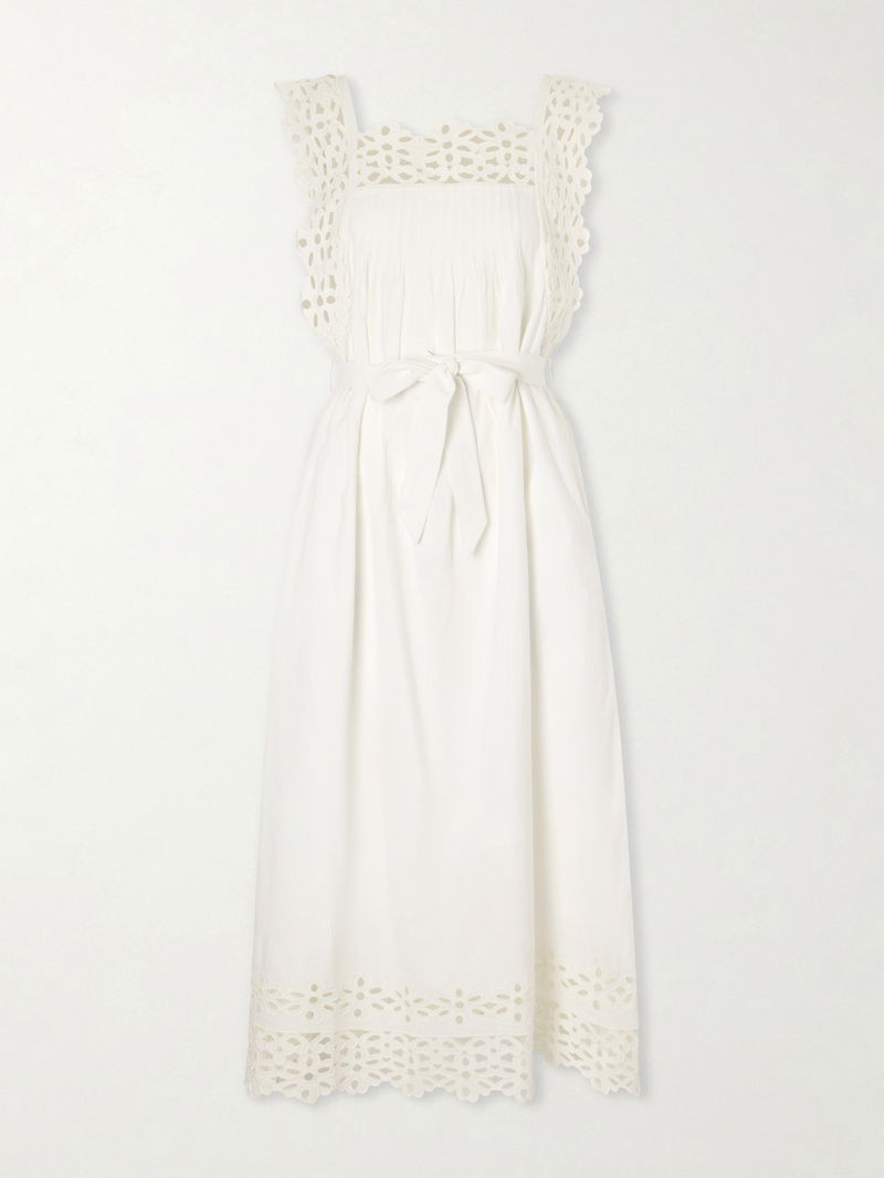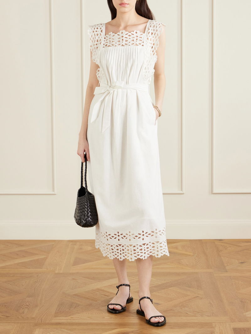 Sea captures a sun-drenched sensibility through breezy silhouettes and considered detail. The 'Leila' dress is cut from breathable cotton and linen-blend with floral broderie anglaise; soft pleats define the slim bodice before it flares gently. Use the matching belt to cinch the waist and style with sandals.