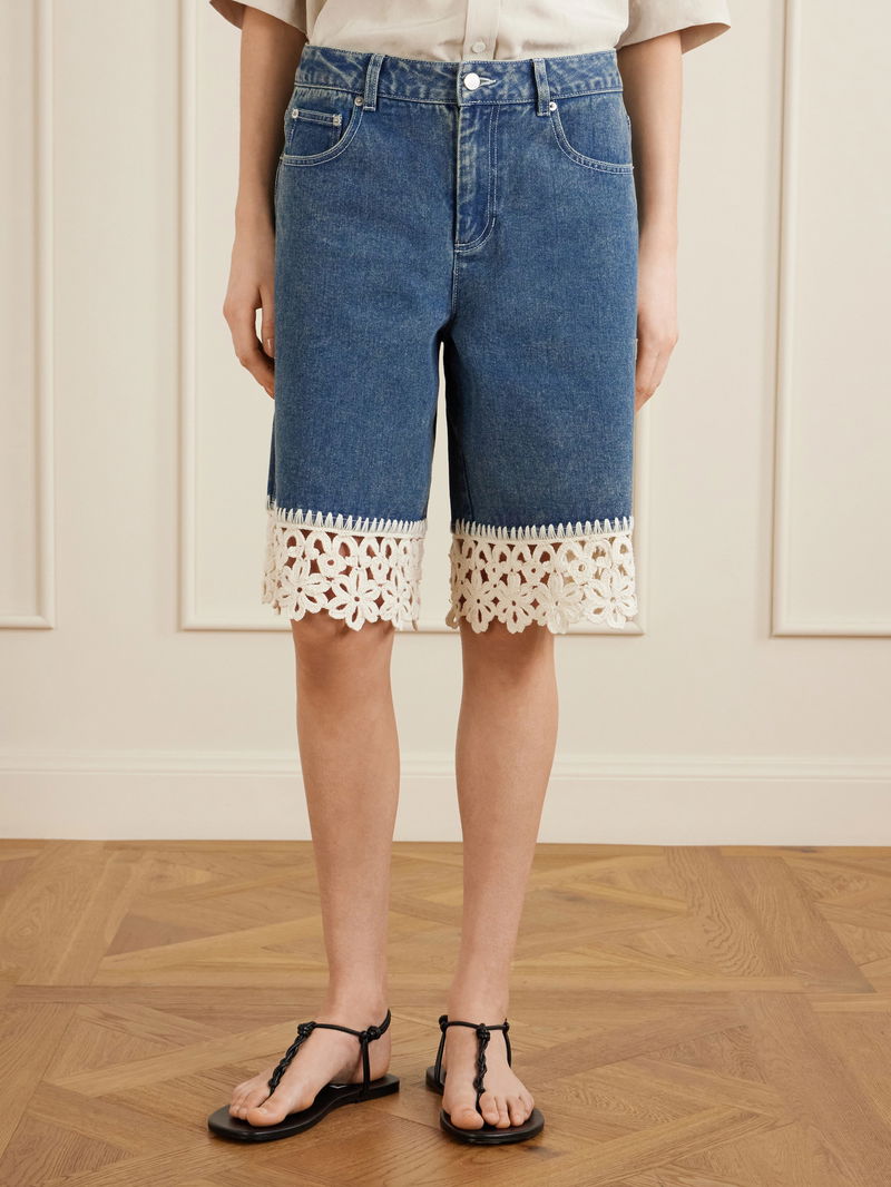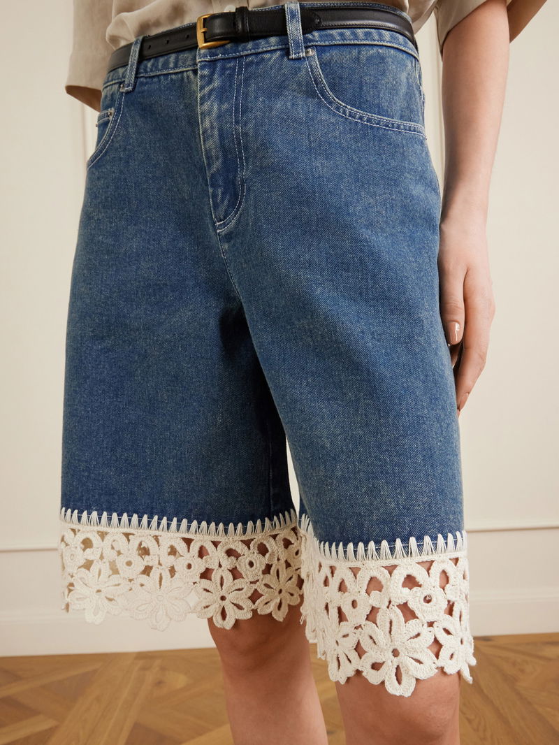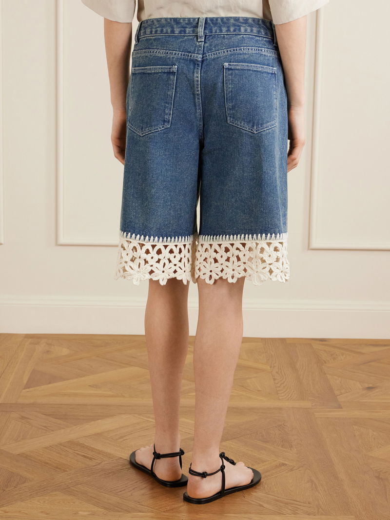 Sea’s ‘Stasia’ shorts bring a romantic note to your transitional wardrobe. Made from denim, they’re traced with floral crocheted trims that lend an artisanal feel. - Net a Porter