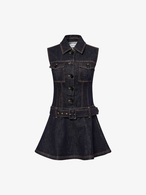 With a mission to celebrate women in every design, Self-Portrait has grown a strong cult following behind its soft, feminine aesthetic. Made from denim, this minidress features a flared skirt and a belted drop waist.