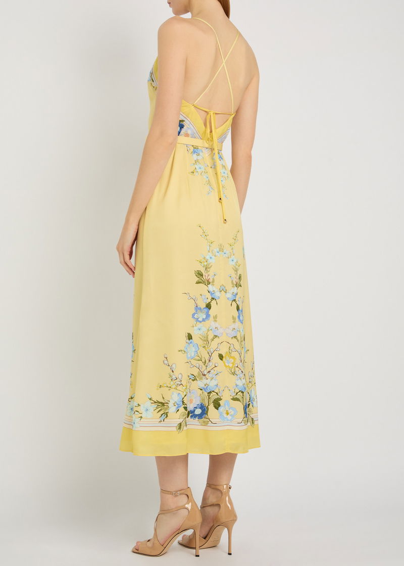 Belted Floral Satin Midi Dress