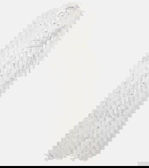 • Puff sleeves, belt loops, buckle-fastening belt, side slip pockets, scalloped trims, internal slip dress lining