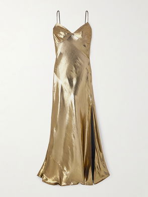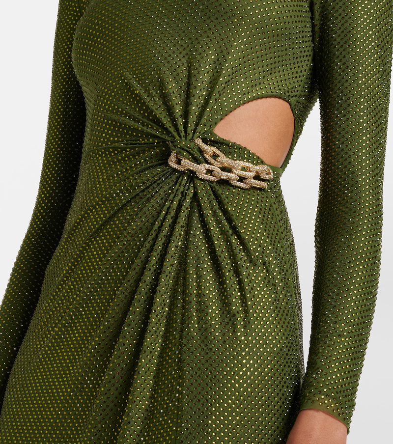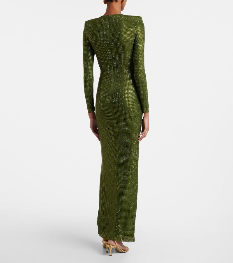 With a mission to celebrate women in every design, Self-Portrait has grown a strong cult following behind its soft feminine aesthetic. Made from jersey, this gown is complete with removable shoulder pads, all-over crystal embellishments, and a gold-toned chain detail.