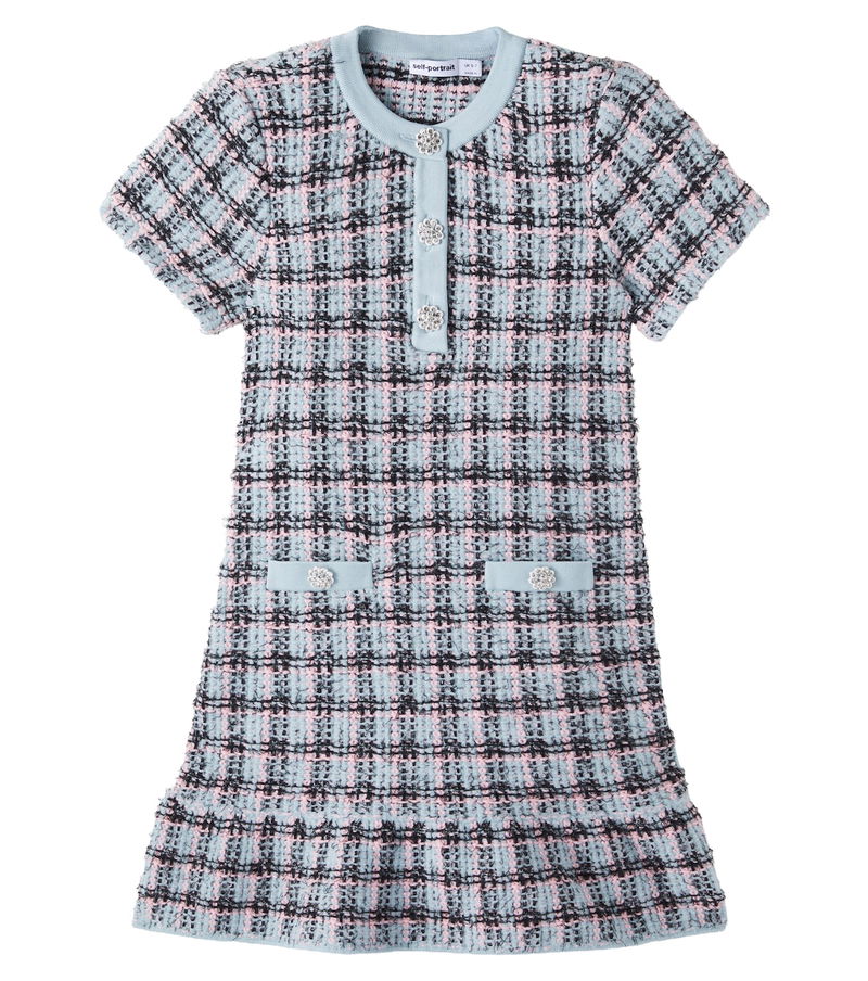 Self-Portrait Kids delivers pretty party pieces in mini-me proportions. Made from checked cotton-blend tweed, this dress features crystal-embellished button fastenings and a gathered detail toward the hemline.