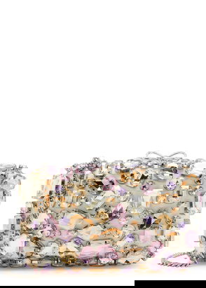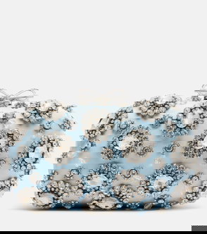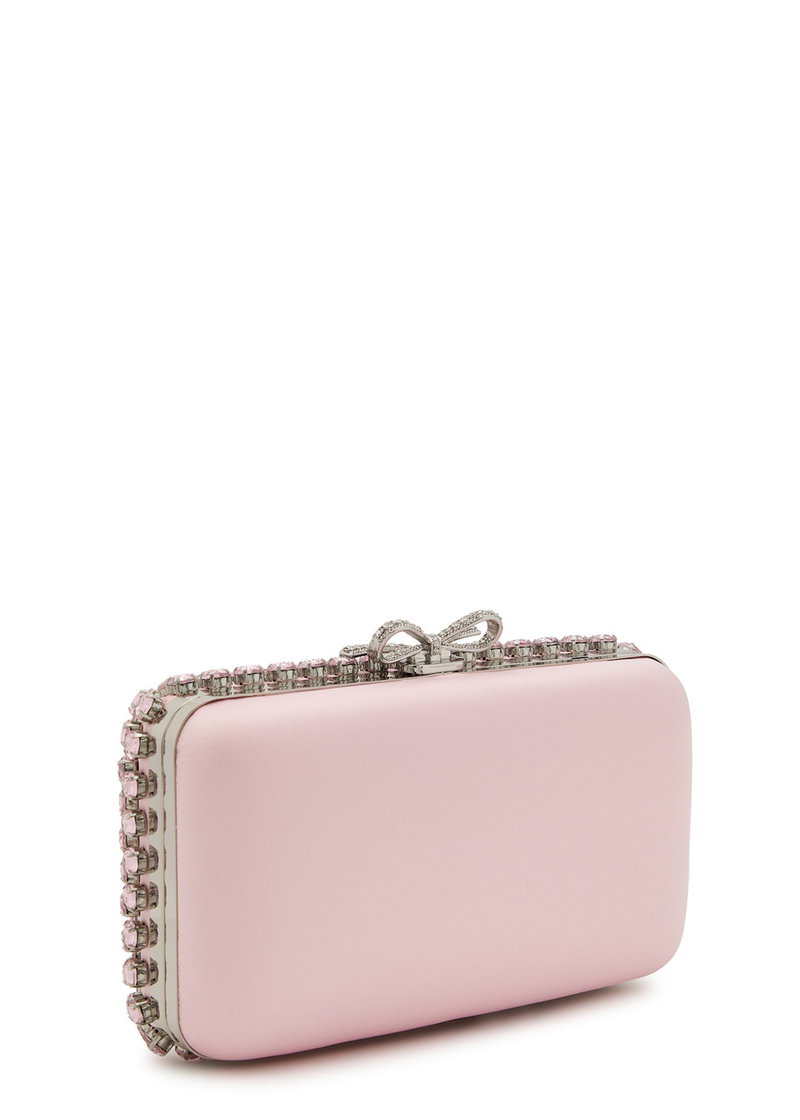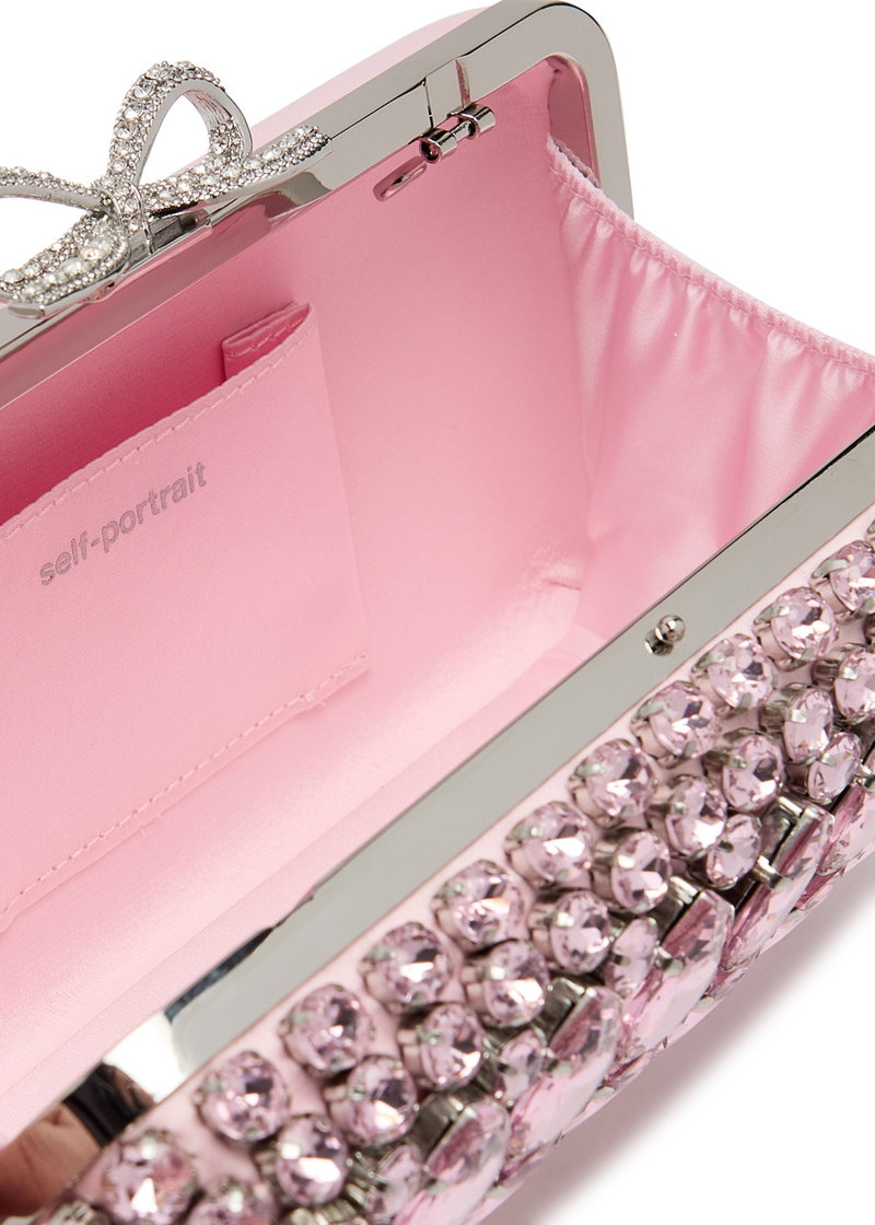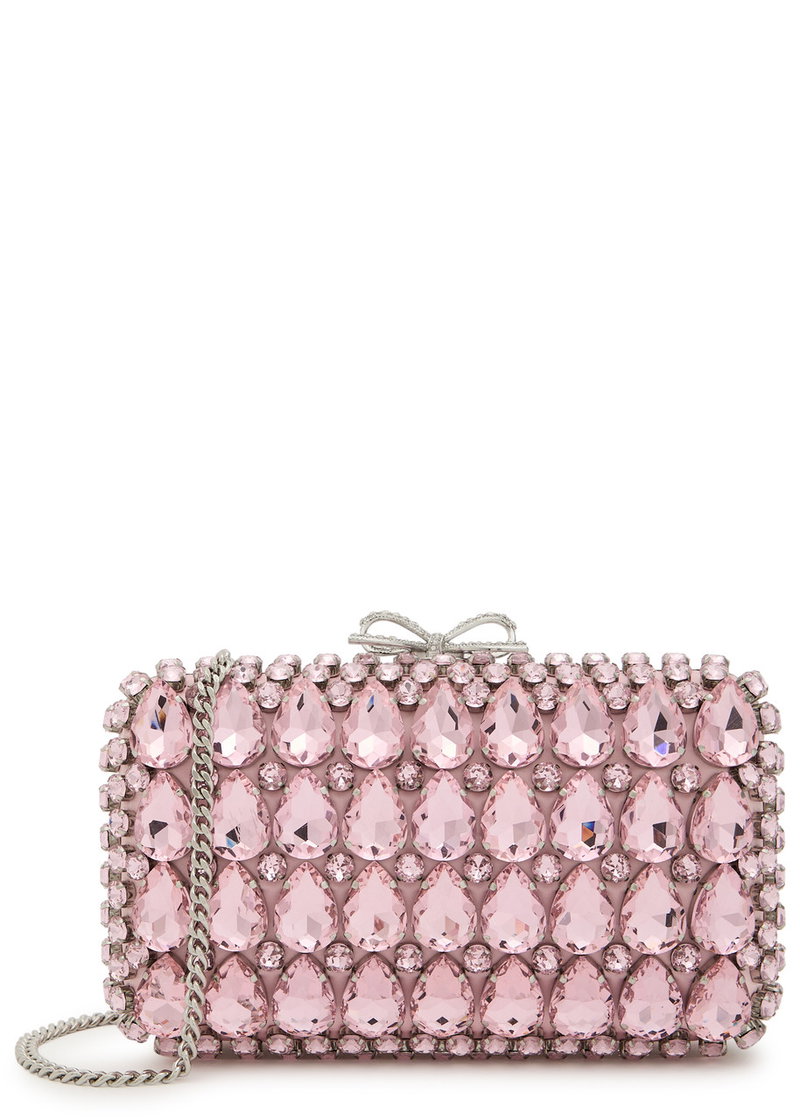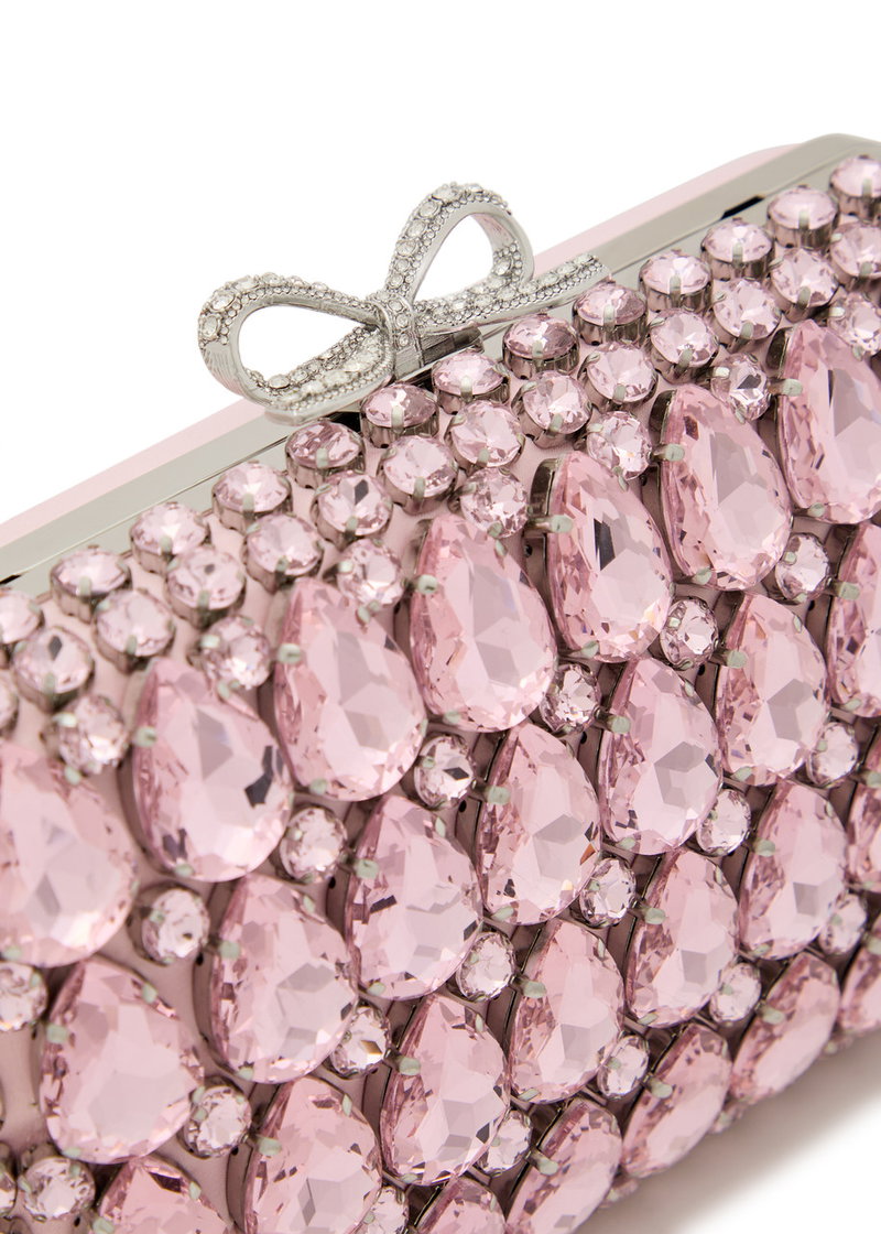 • Detachable chain shoulder strap, crystal embellishments, metal bow plaque, internal card slot, fully lined