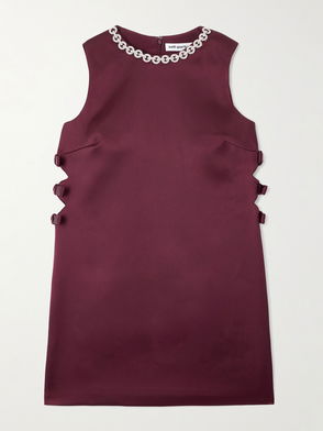 Self-Portrait's mini dress is cut from smooth satin with a subtle luster and embellished along the collar and sleeves by scores of light-catching crystals and sequins. Reach for diamonds and emeralds to magnify their effect.