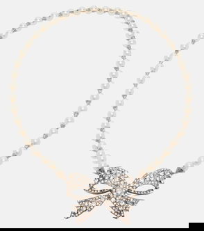 Self-Portrait faux-pearl choker. Faux-pearl beaded, crystal-embellished bow pendant. Adjustable lobster clasp fastening.