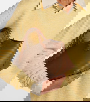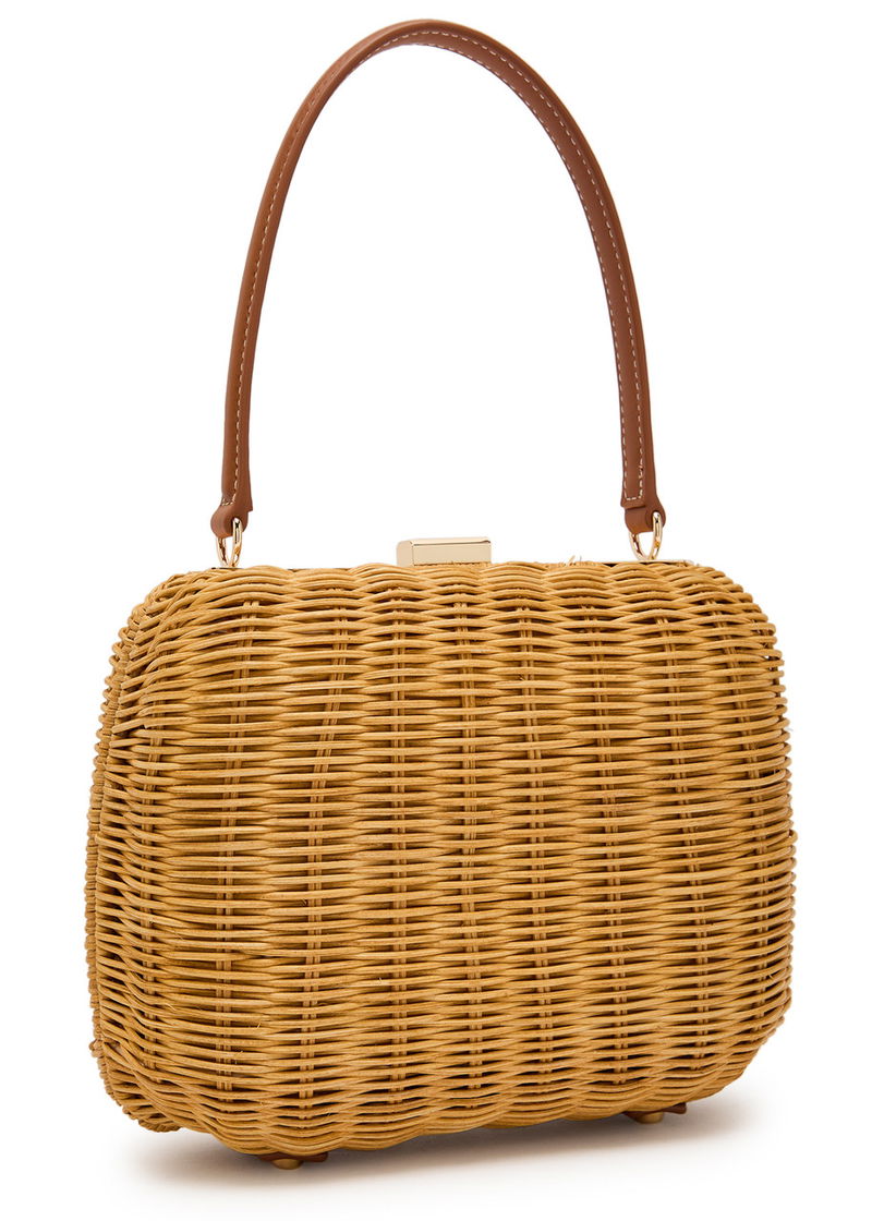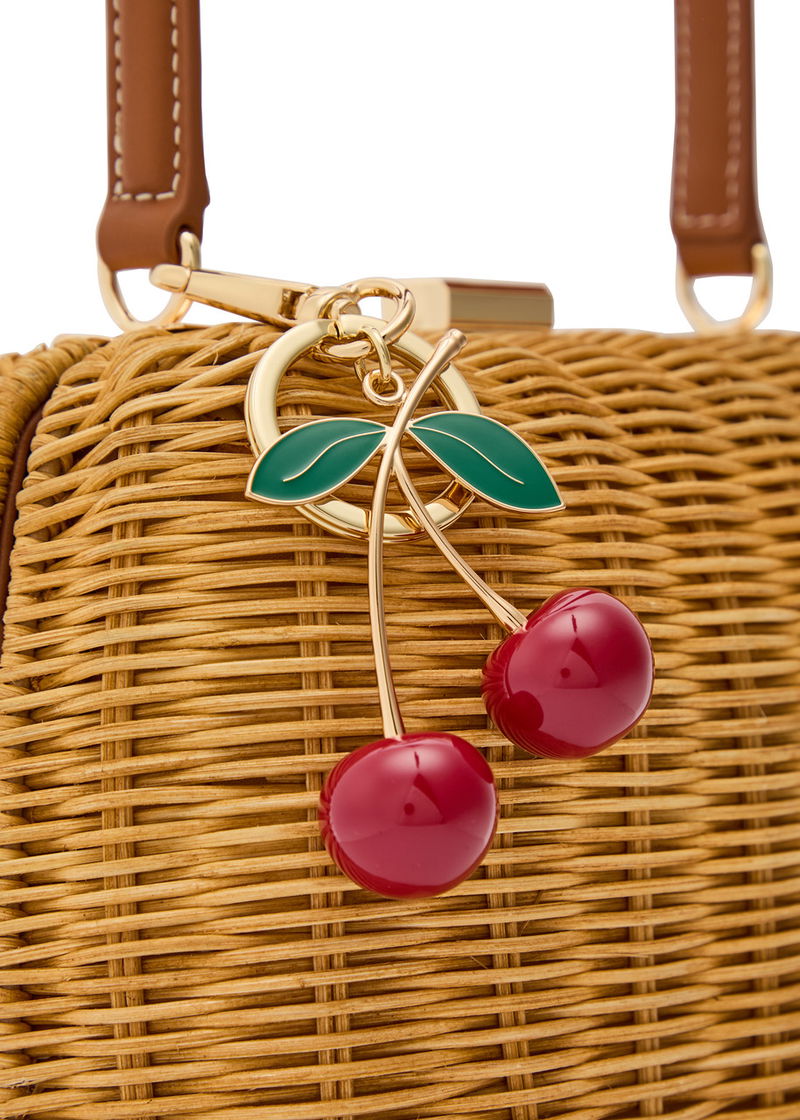 • Leather top handle, detachable hanging cherry bag charm, feet, internal card slot, fully lined