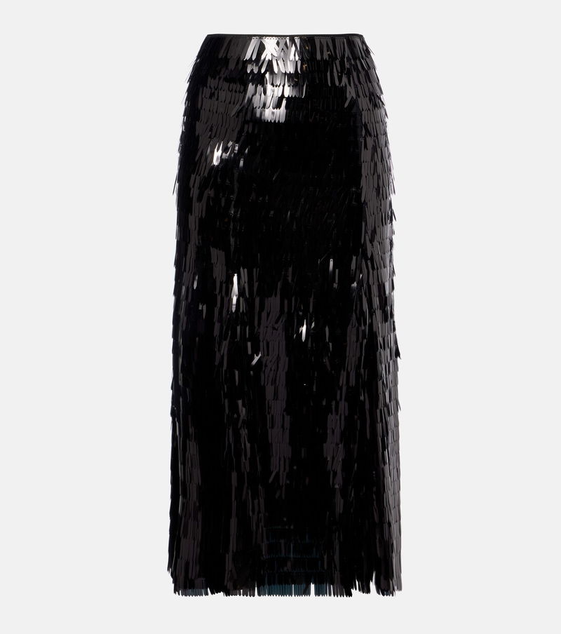 With a mission to celebrate women in every design, Self-Portrait has built a strong cult following for its soft graceful aesthetic. This high-rise midi skirt is adorned with black sequins for a dazzling finish.