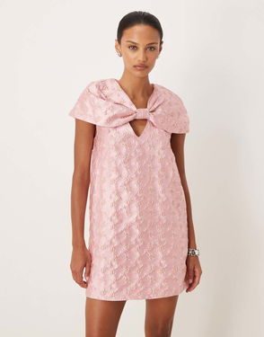 Floral Jacquard Puff Sleeve Mini Dress In Wine