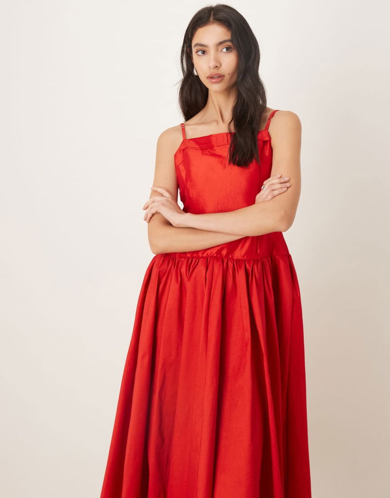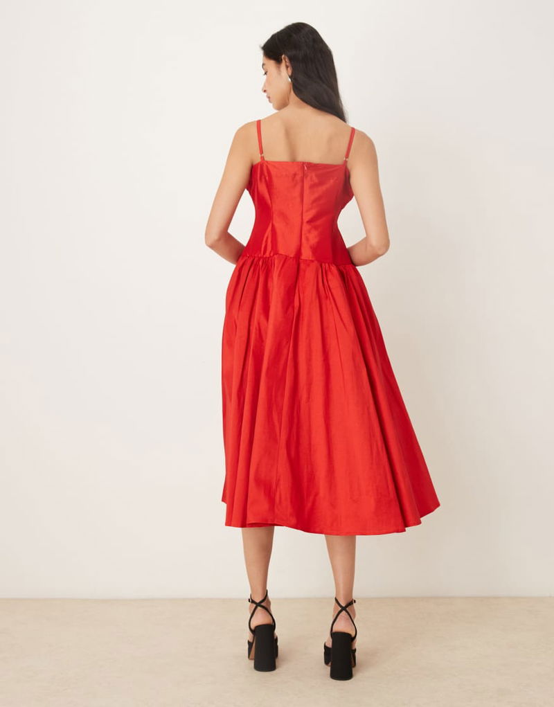 Quartet Taffeta Midi Dress In Red