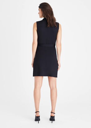 Sleeveless Shift Dress In Black With Contrast White Bow