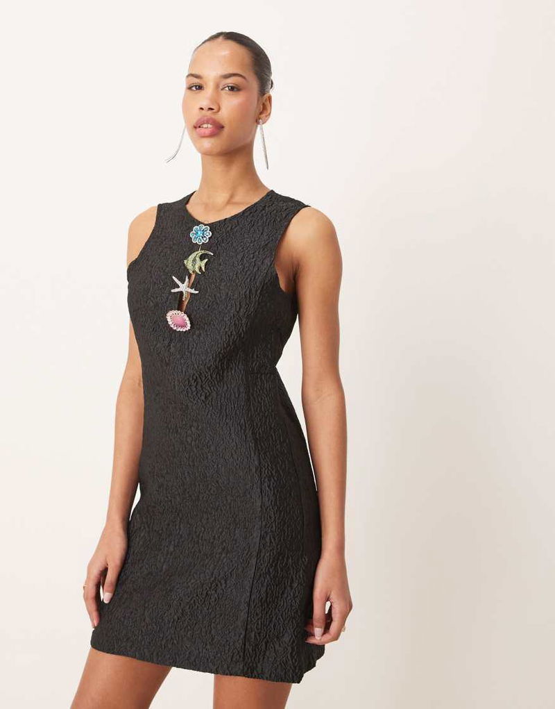 Round neck Sleeveless style Charm detailing Zip-back fastening Regular fit.