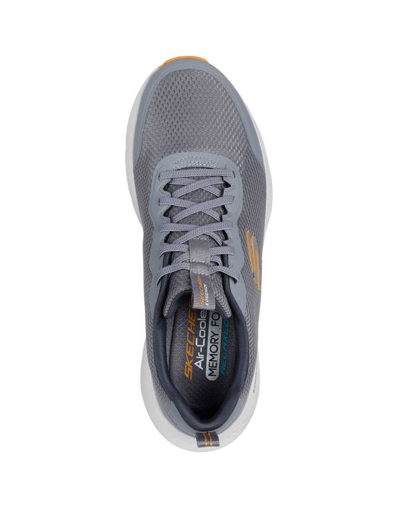 Low-profile design Pull tab for easy entry Lace-up fastening Padded tongue and cuff Signature Skechers branding Air-Cooled Memory Foam® midsole provides lightweight cushioning Durable rubber outsole Textured grip tread.