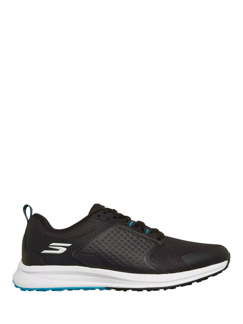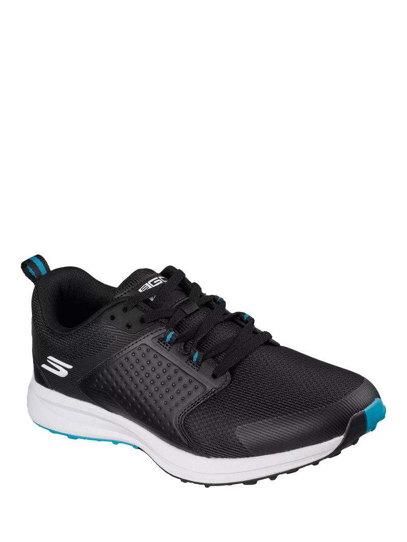 Handle the course in sporty club style wearing Skechers GO GOLF Quest. This water-repellent golf lace-up features a mesh and genuine leather upper with earth-friendly ECO FLIGHT cushioning and a spikeless traction outsole. Skechers ECO FLIGHT lightweight and resilient cushioning. Cushioned comfort insole. Mesh and leather overlay upper. Lace-up club golf design. Spikeless traction outsole.