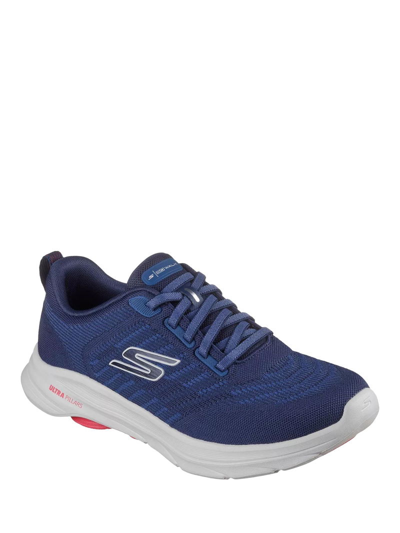 Put a stylish spring in your step with Skechers GO WALK 8 Day. This easy-on walking style features a flat knit upper with fixed stretch laces, a high-rebound Skechers Air-Cooled Goga Mat insole and lightweight ULTRA GO midsole cushioning.
