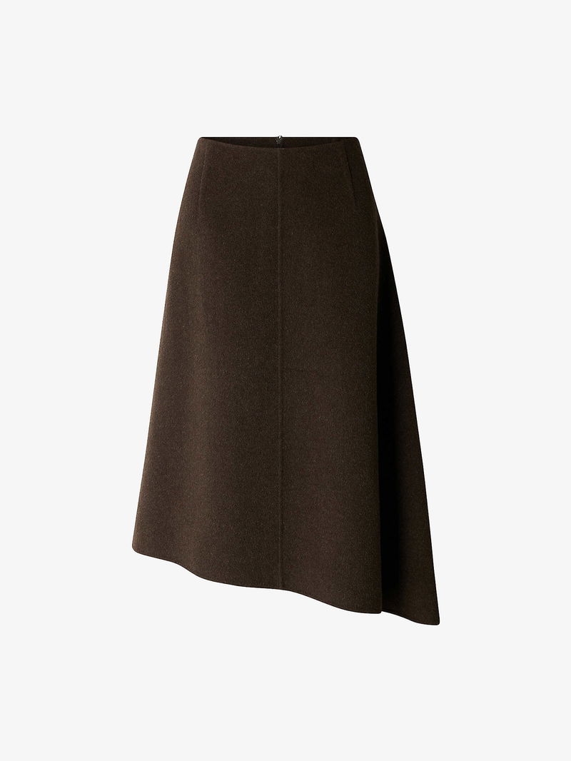 Geneve Asymmetric-Hem Wool-Blend Midi Skirt