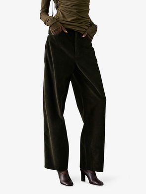 Soeur cotton trousers. Button, hook-and-eye and zip-fly fastening. High rise, belt loops, straight leg, turn-up hem.