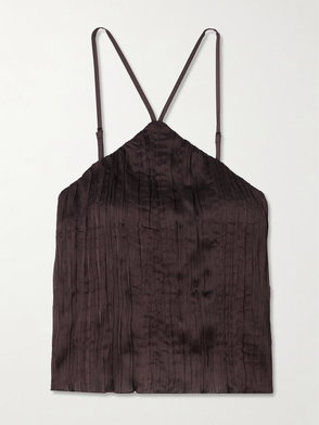 Staud has captured the hearts of many with its playful and uniquely fresh aesthetic. The Akari top is made from a lustrous plissé fabric and features a chic halter neckline.
