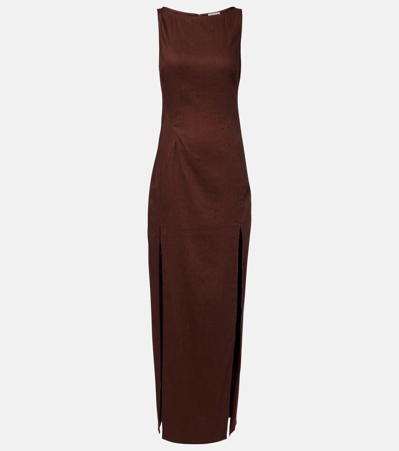 Staud seeks to break through repetition in design with thoughtful styles that are empowering and accessible. Made from a linen blend, the Costa maxi dress features a double vent and a boat neckline.