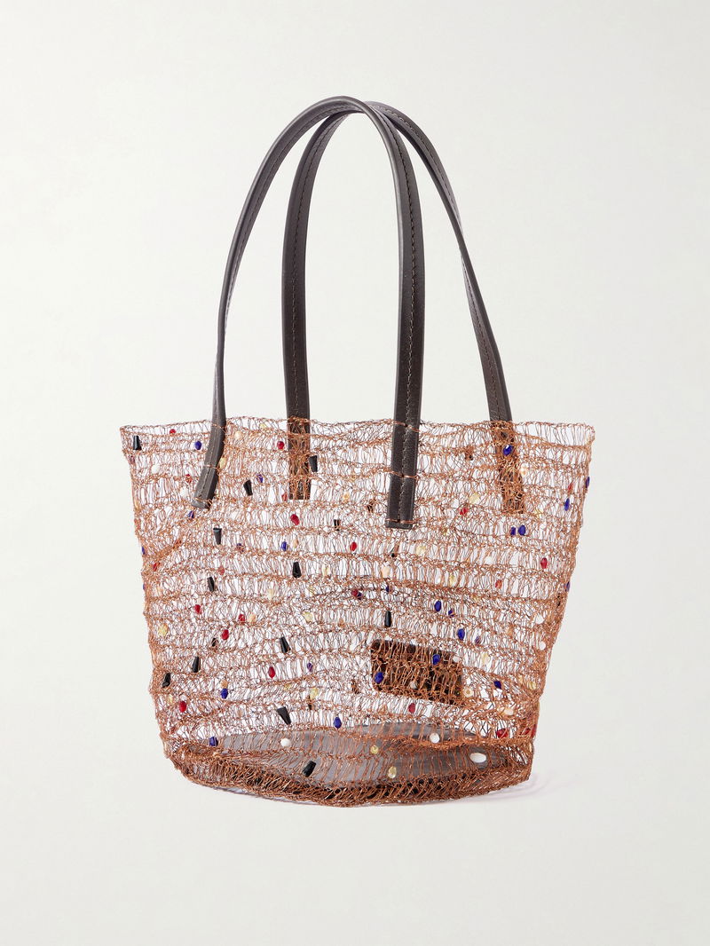 Playful, modern, and effortlessly cool, STAUD redefines accessories with a touch of glamour and whimsy. Embodying just that, this 'Jewel' bucjet bag is made from lightweight crocheted copper wire threaded with vibrant beads and crystals and trimmed with soft leather. There's space inside for your phone, cardholder and keys.