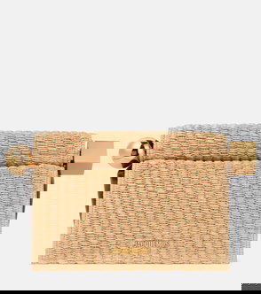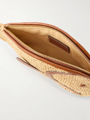 Pesce Leather-trimmed Raffia Clutch